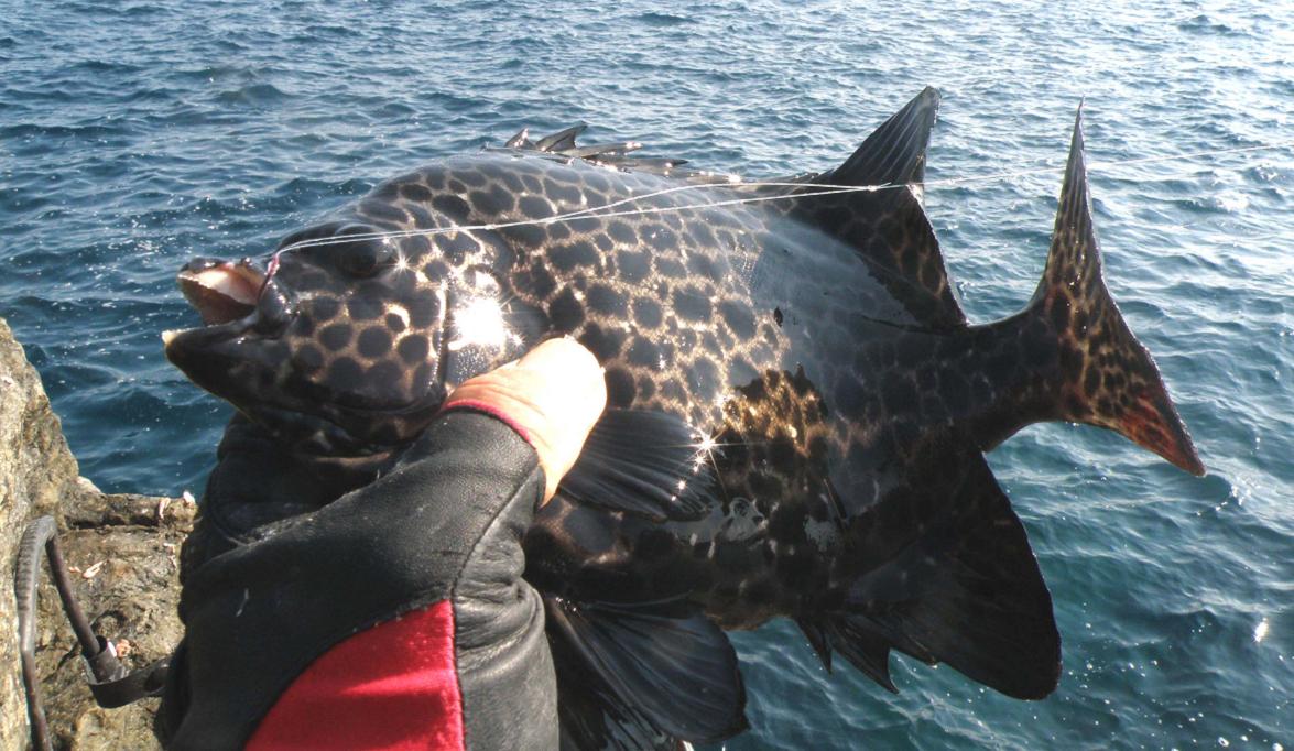 磯際を狙うとイシガキダイの小型も釣れました。このお魚さんは好き