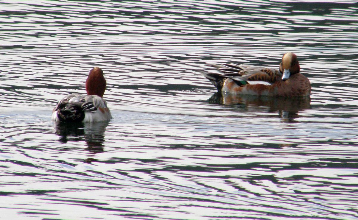 大分では普通に見かけるカモです。年中見るカルガモは留鳥ですが、ヒドリガモは冬鳥で、かなりの数やってきています。