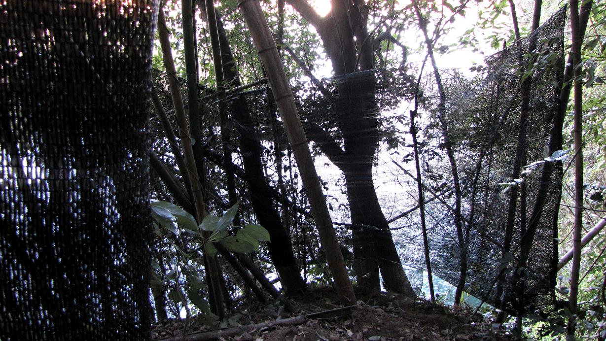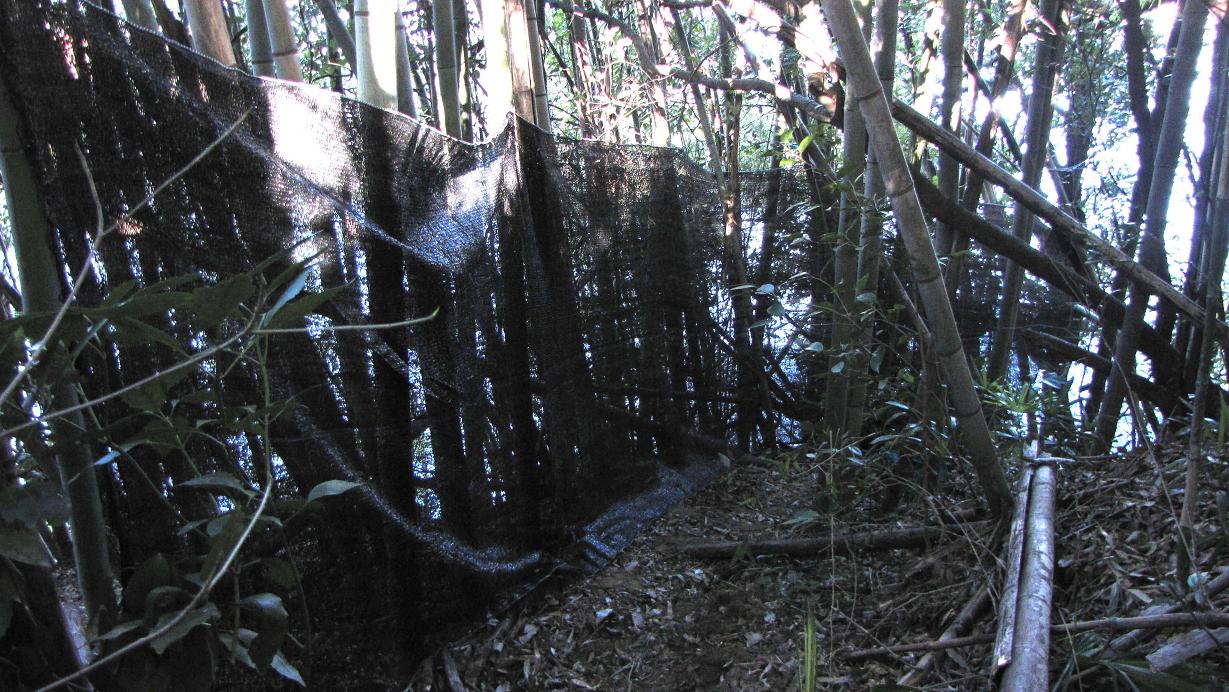 撮影場所に続く移動場所には、彼らから見えないように黒い防風ネット