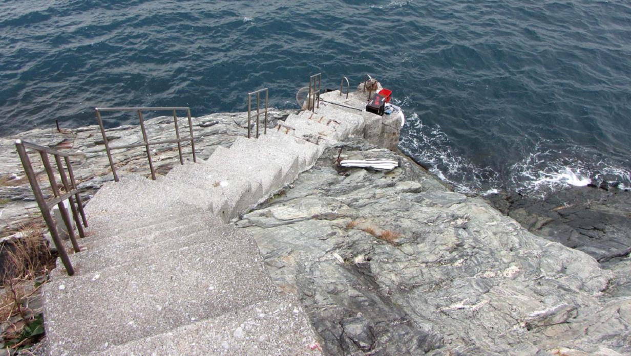 沖の黒島“カイダン”です。これを10分登って行くと灯台に行き着きます
