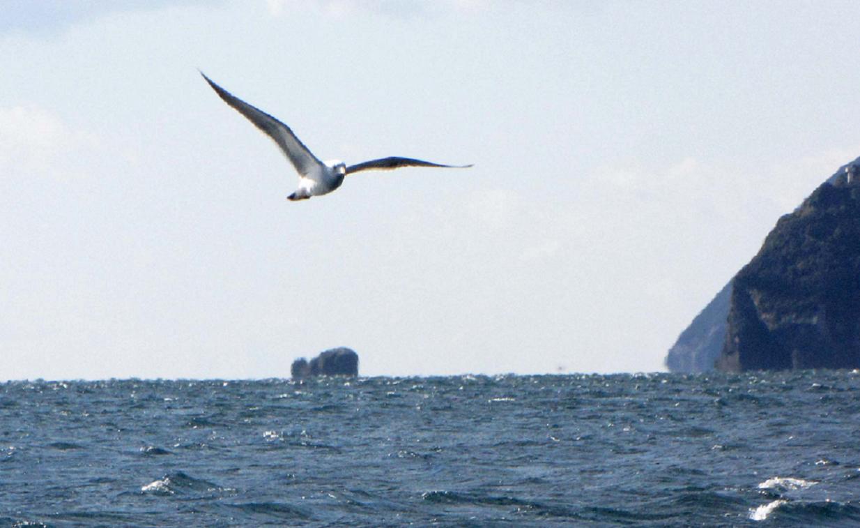 ウミネコは私達の磯から離れようとしません。強風も出始めました