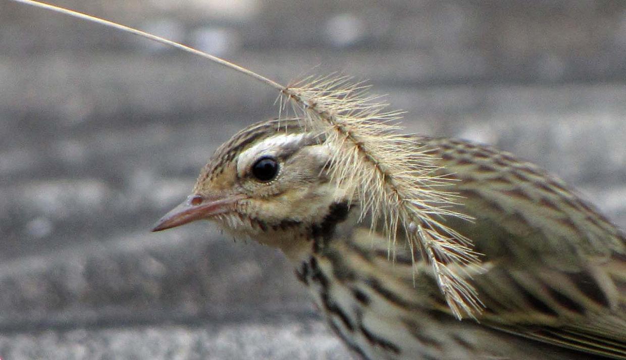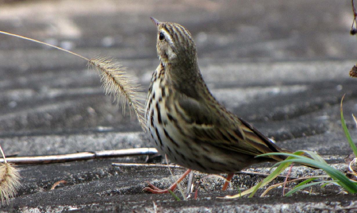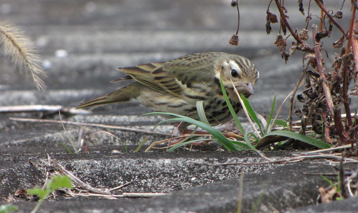 それらの鳥たちを見ていると、上流で派手な水音、目をやるとヤマセミも居ました。その距離100~150m?今度は足元の護岸をウロチョロする小鳥がやってきました。2羽のタヒバリです。相当に近いです!!