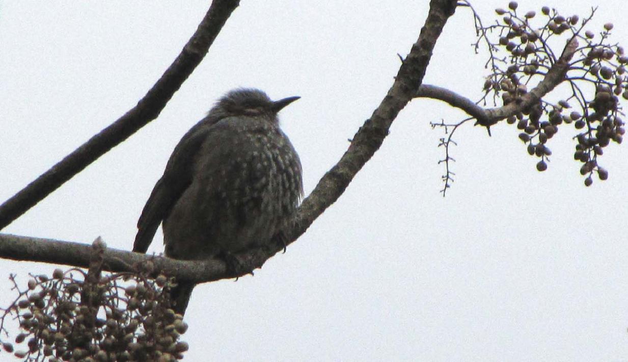 まん丸のヒヨドリ、ゆっくりとくつろいでいます