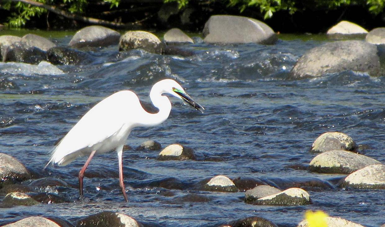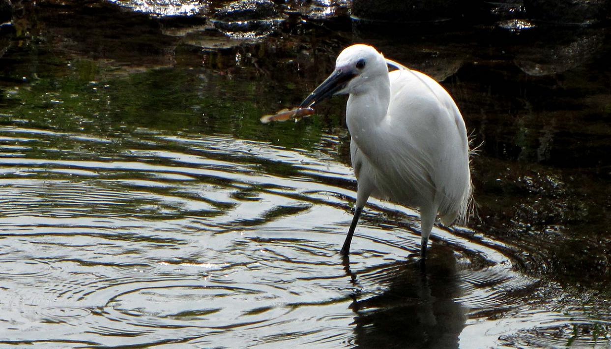 ダイサギは大きいドンコ?を捕まえて丸呑みしました