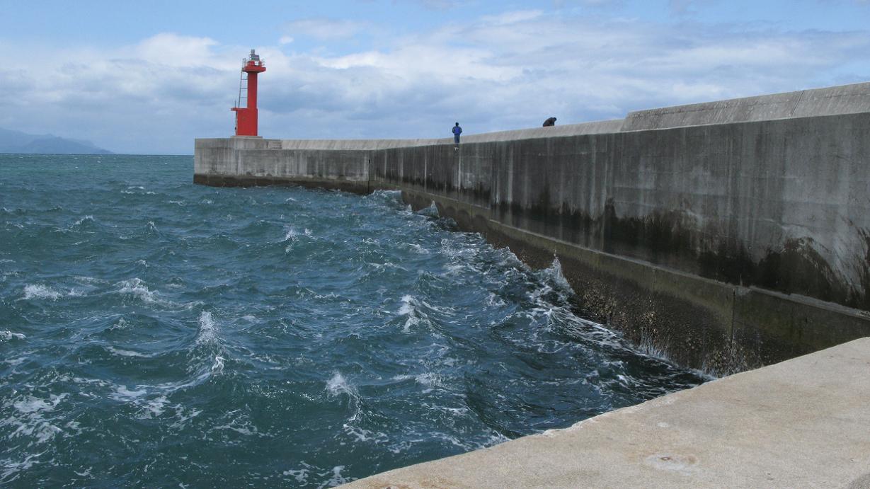 初日の26日は強風の中での釣り、風と正面から向き合って釣りますが波の上下動が激しく、アタリは一度も出ません。風を後ろから受ける沖のスリット側では、スリットから出て喰って来たカンダイに、一発で切られました。