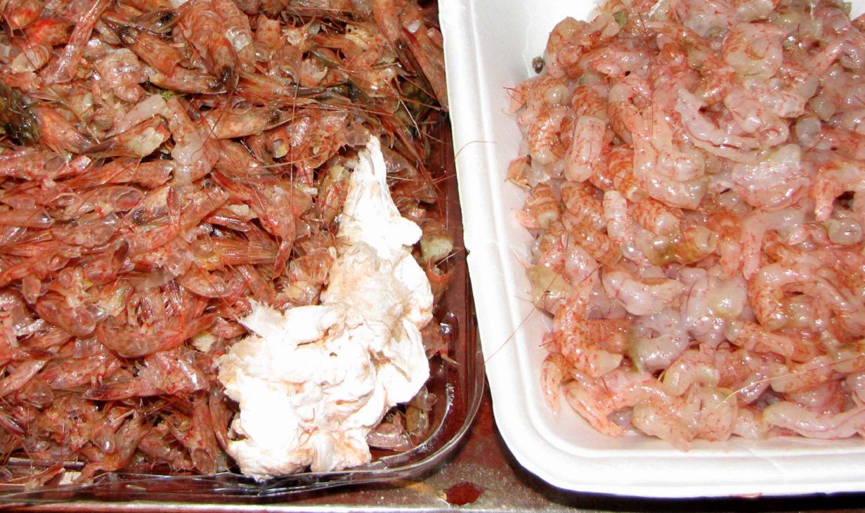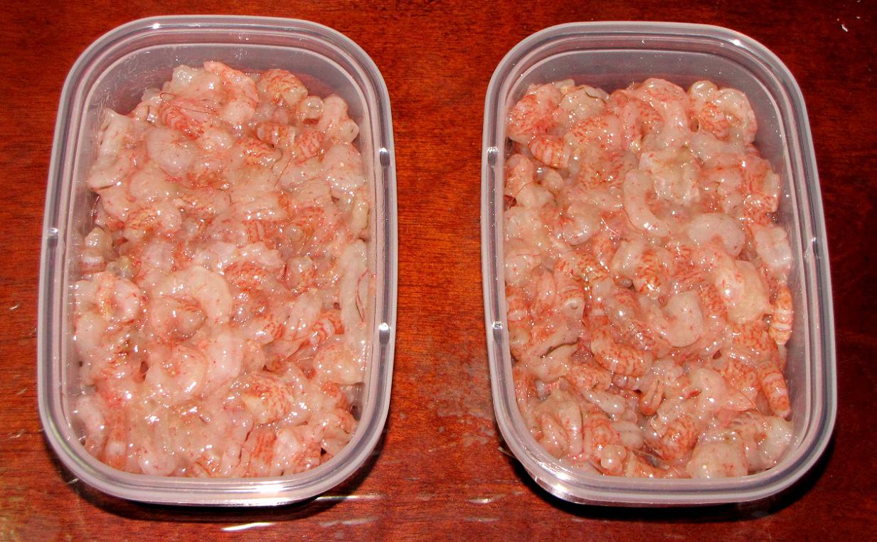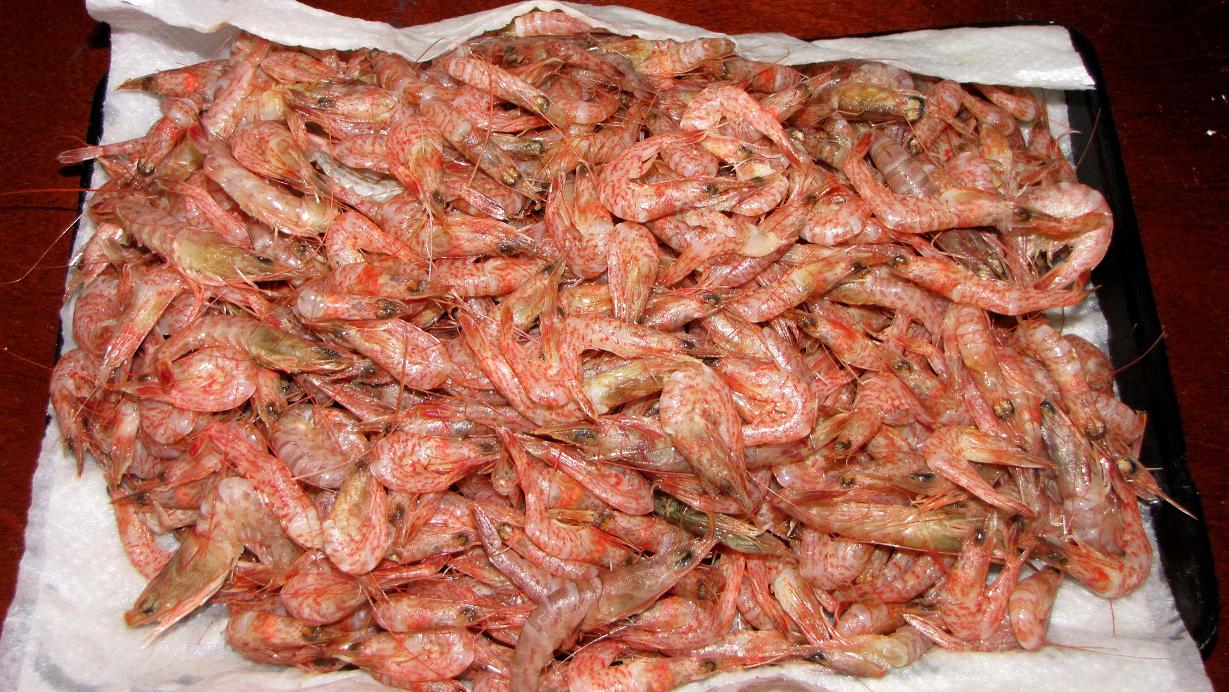シバエビのムキミですが、今回のシバエビはアカエビが95パーセントくらいです。残りはサルエビとトラエビだと思います。