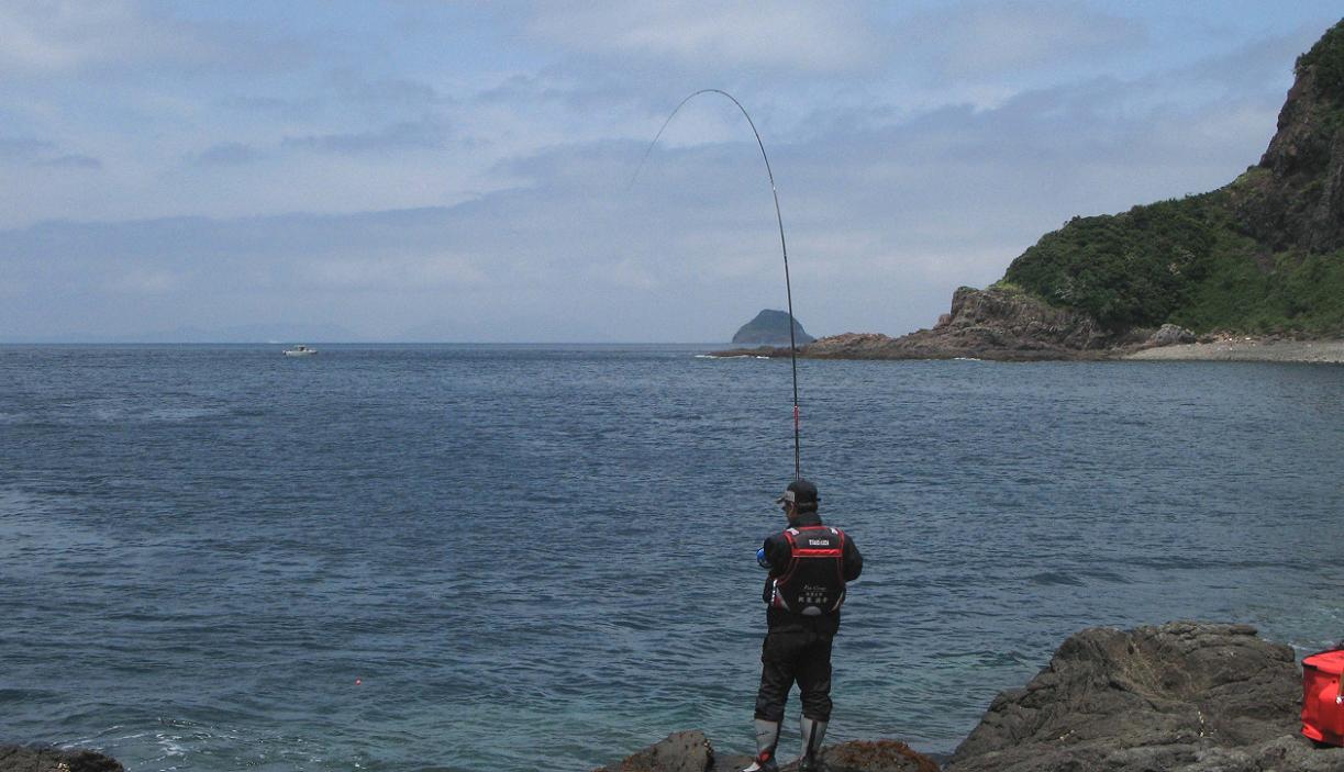 沖に向いて右側のポイントから入りました。手前は浅く、追い風を利用しての遠投で攻めます。例年なら志々岐崎周辺は、エサ取りのコッパグレとスズメダイのオンパレードのハズですが、今年は違いました。