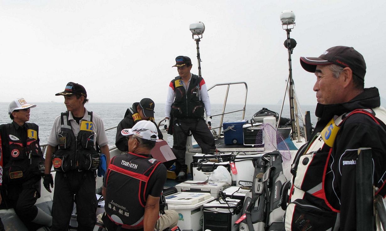 1回戦を勝ち上がった選手だけが船に乗り込みます。30名ほどが半数になっています。ここで新たに対戦相手を決める抽選が行なわれ、私の対戦相手は大分から参加の金只さんに決まりました。
