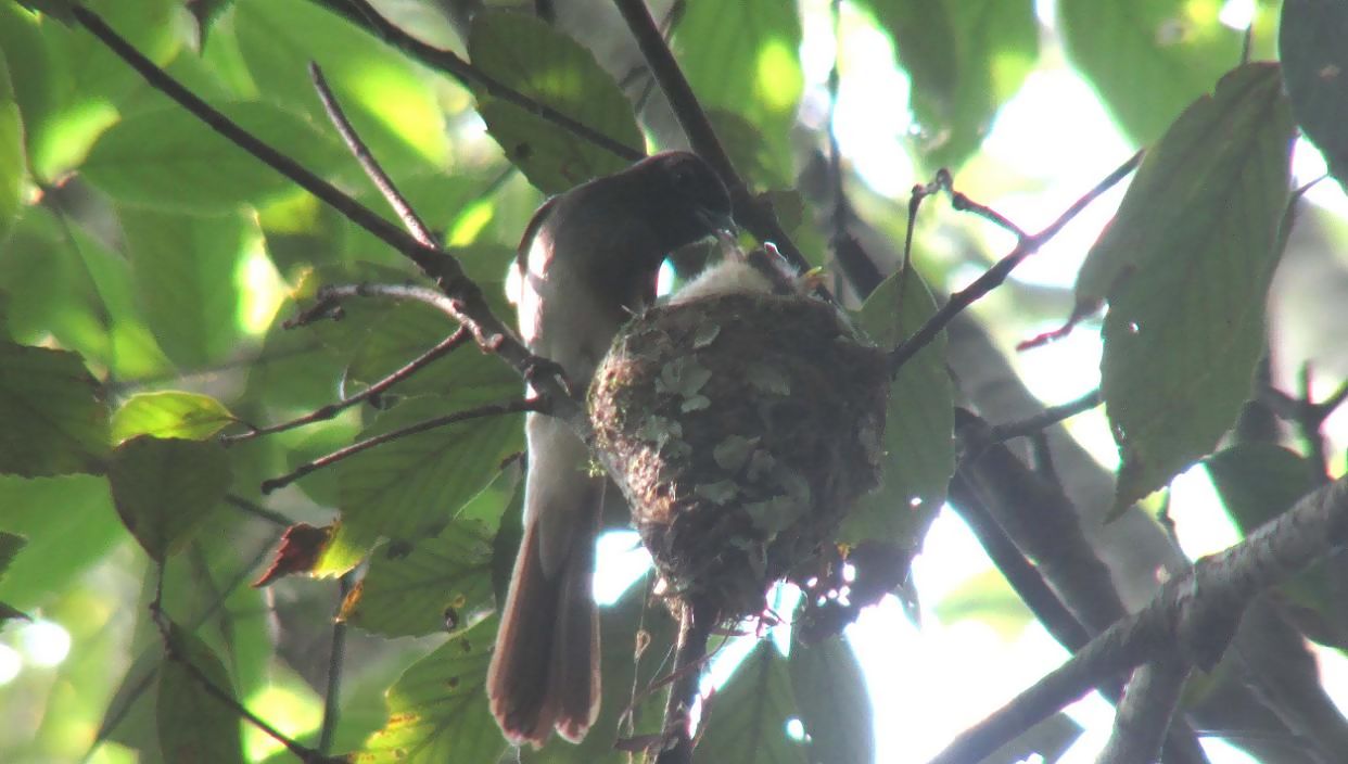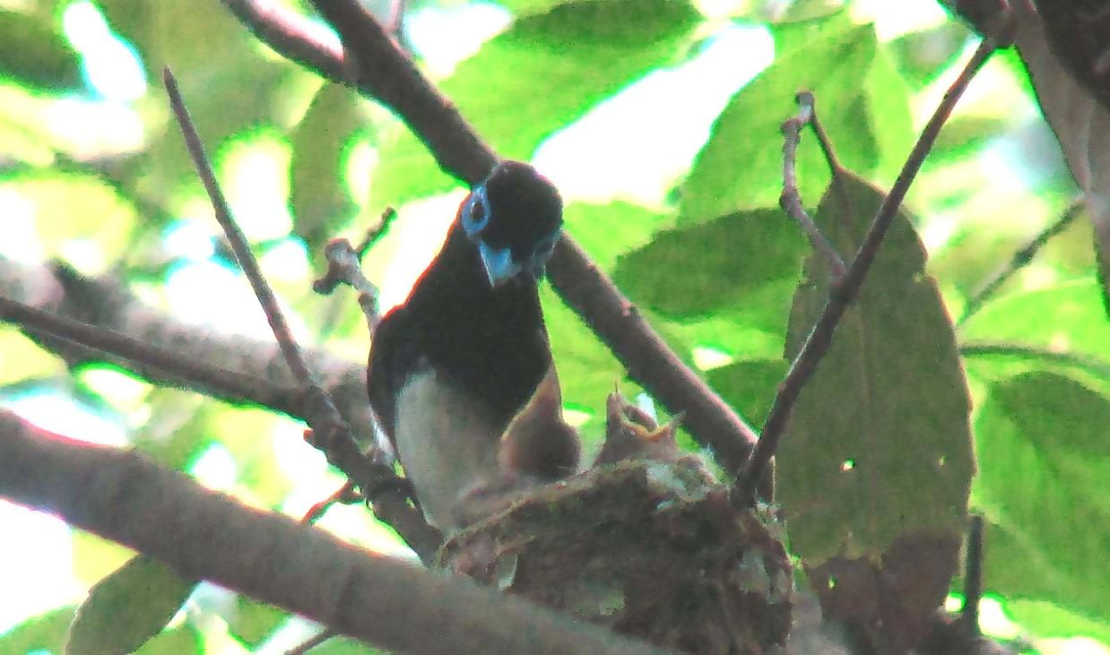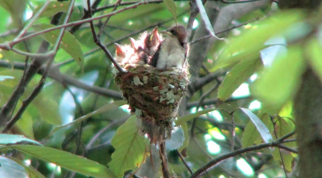ハルゼミがかなり合唱する中、親鳥はせっせと子育てに励んでいます。8日目ともなると、4羽の雛たちは大きくなって大変です。あの小さな巣に、4羽がテンコ盛りになって騒ぎます。
