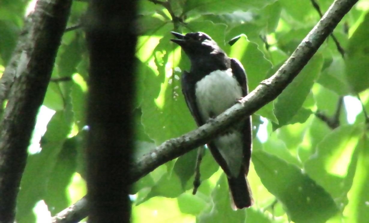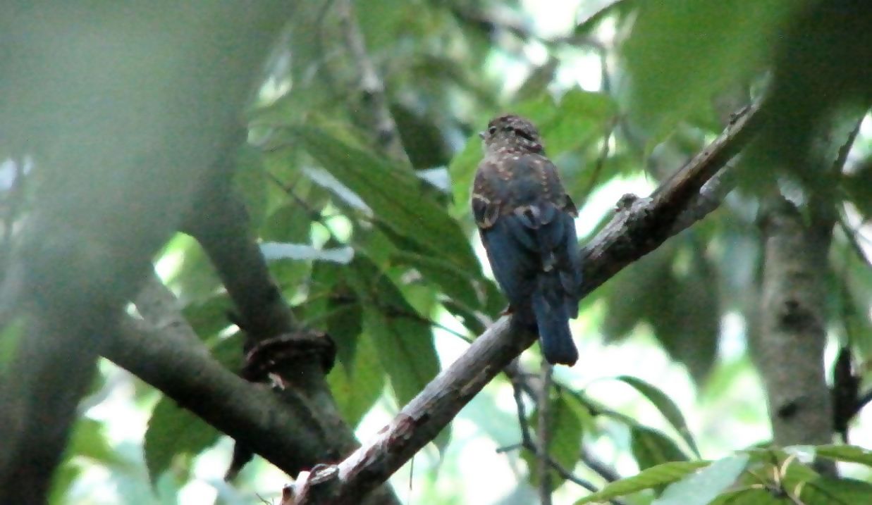 直ぐ傍の道路ではチチチッチチチッ・・・と今年生まれのホオジロのオスが来ていました。その道路から木立の間を見ていると、今年生まれのオオルリのオスの若が通過していきました。