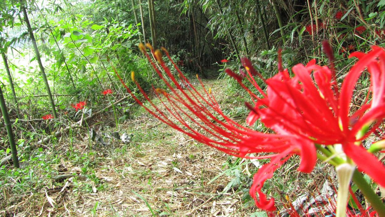 彼岸花が咲いている左は七瀬川、この20m上流でナマズ・ウナギ
