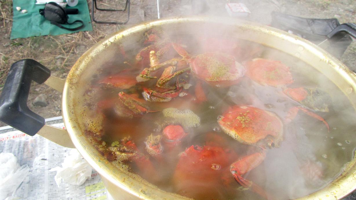 茹で上がった直後、このカニは本当に美味いし、ミソも身も多い