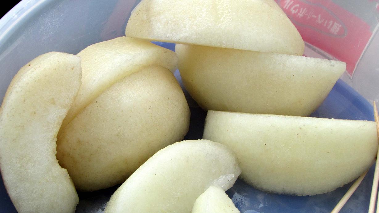 のあさんご夫婦差し入れのナシ。数少ない白い食材
