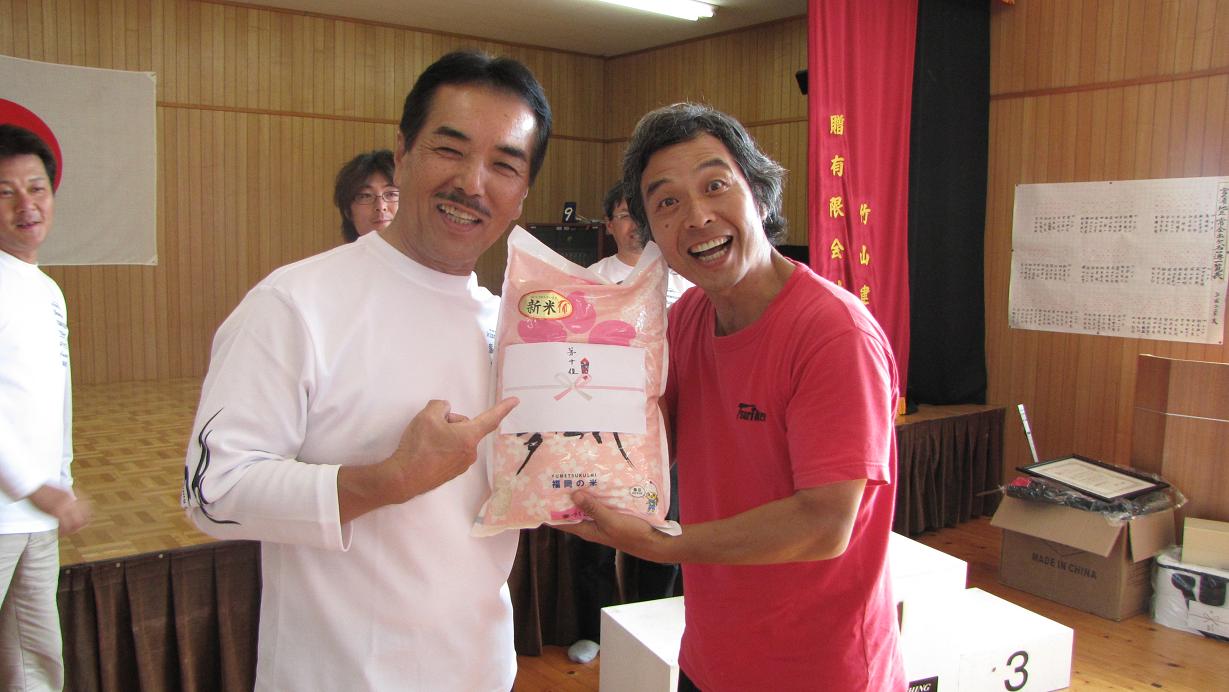 柴原大会運営委員長から10位入賞の米を受け取る私