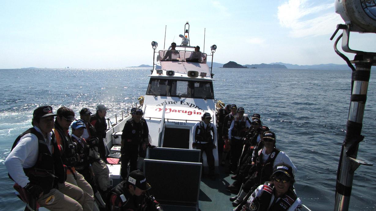 10月4日、若手のバリバリ、久保平君と木村君とで会場へ乗り込みました。平戸港に集まった参加者は欠員もあり、141名のG杯ファンでした。6隻の大型高速渡船に乗船し、目指すは上五島の野崎島方面と、中五島の椛島方面で、私は丸銀丸のMarine Expressで椛島での戦いになりました。