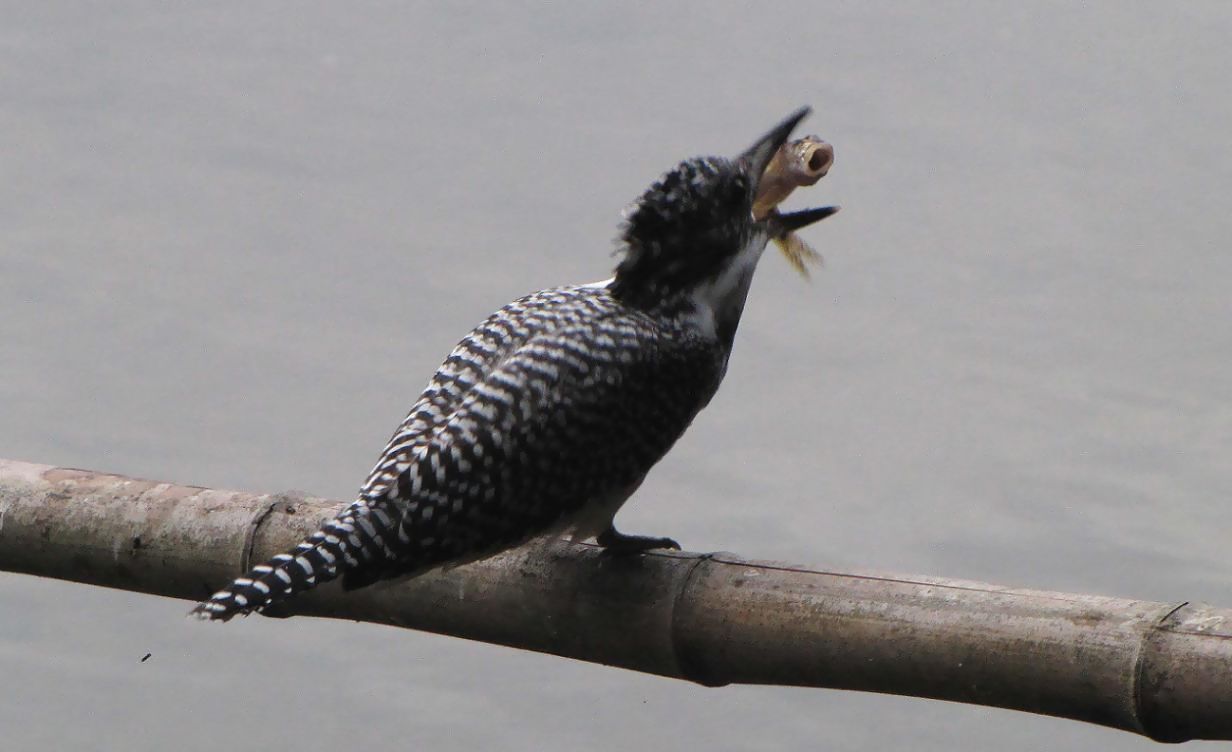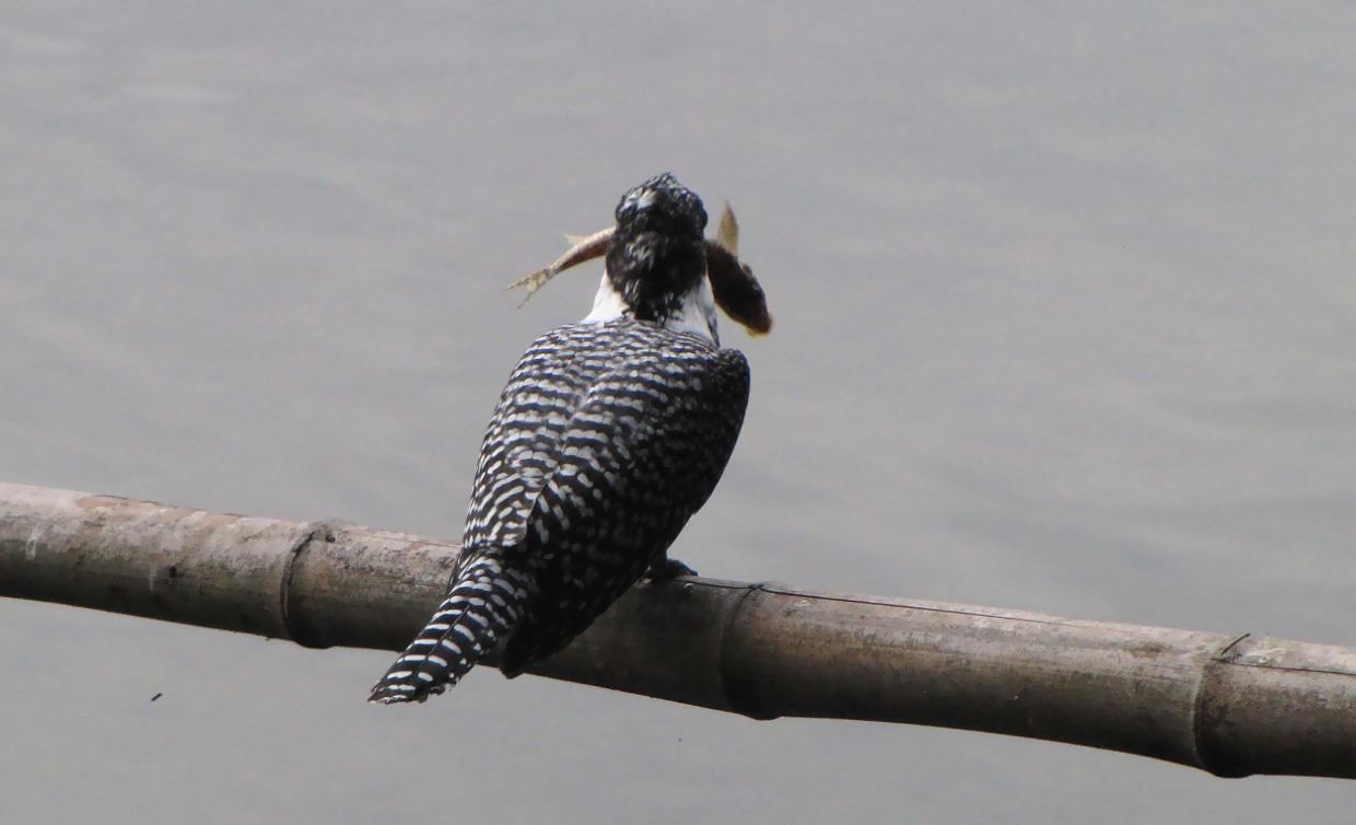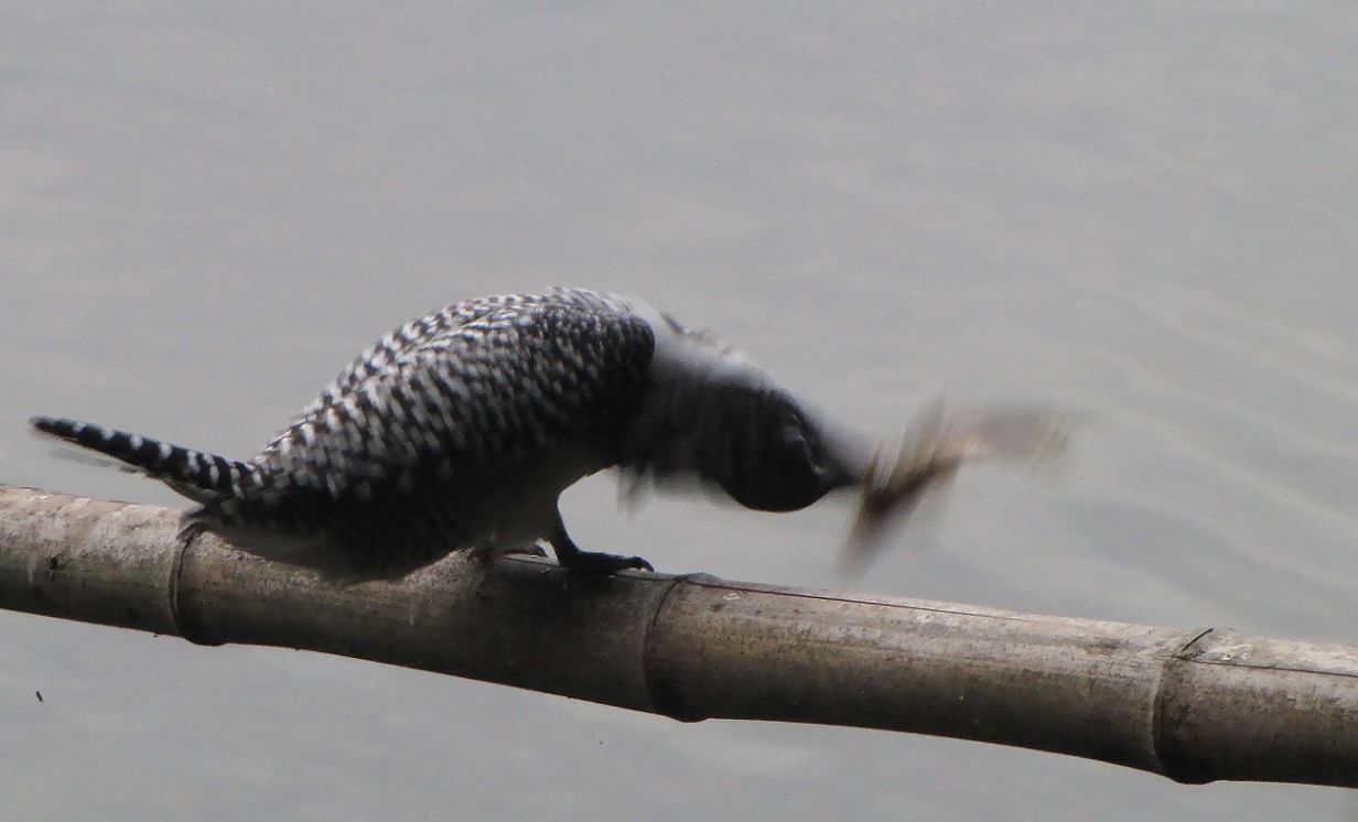 しばらくして“ドッボーン”と音がしましたが、元の竹に舞い戻った様です。狩りに失敗か小型の獲物を咥えたかのどちらかです。