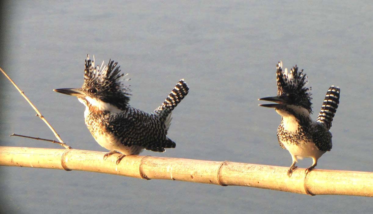 彼らの狩りは単独で、3~10m位はある高さの木から、ダイビングして魚を捕らえる事が多くあります。仮にカップルが2羽並んで獲物を狙って、どちらかがダイビングした場合、驚いた魚は逃げてしまい、次にダイビングできるまで時間を要します。だから単独で行動しダイビングを行うのです。