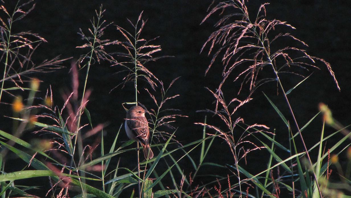 撮影ポイントから出て、電話中の12時ジャスト。一羽の白っぽい小鳥が、カラスザンショウの奥にある枯れ木に留まりました。しぐさはヒタキ系です。肉眼ではキビタキのメスかムギマキのメス?と判断し、電話を片手に撮影しました。