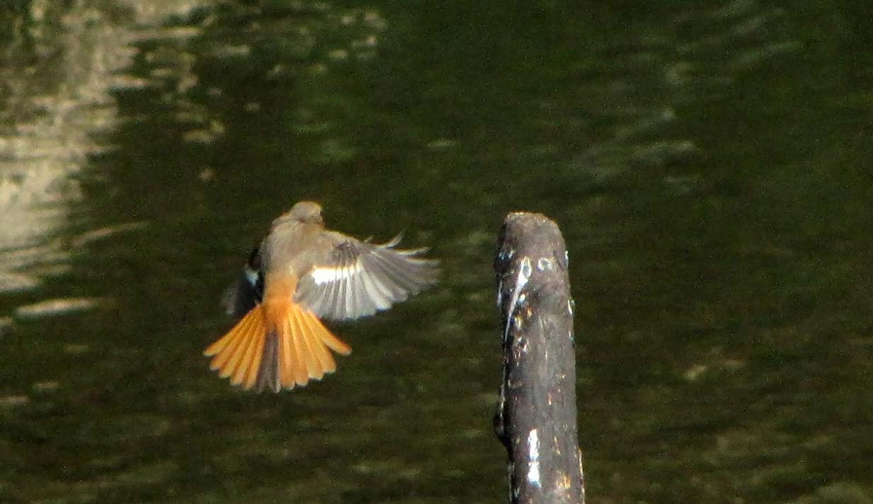 長い電話が終わって撮影したモニターを見ると、写っていたのは冬鳥のルリビタキでした。証拠写真ですが、ルリビタキも大分に来ていたのです。寂しげなヒィ・ヒィ・・・はルリビタキの声だったのです。
