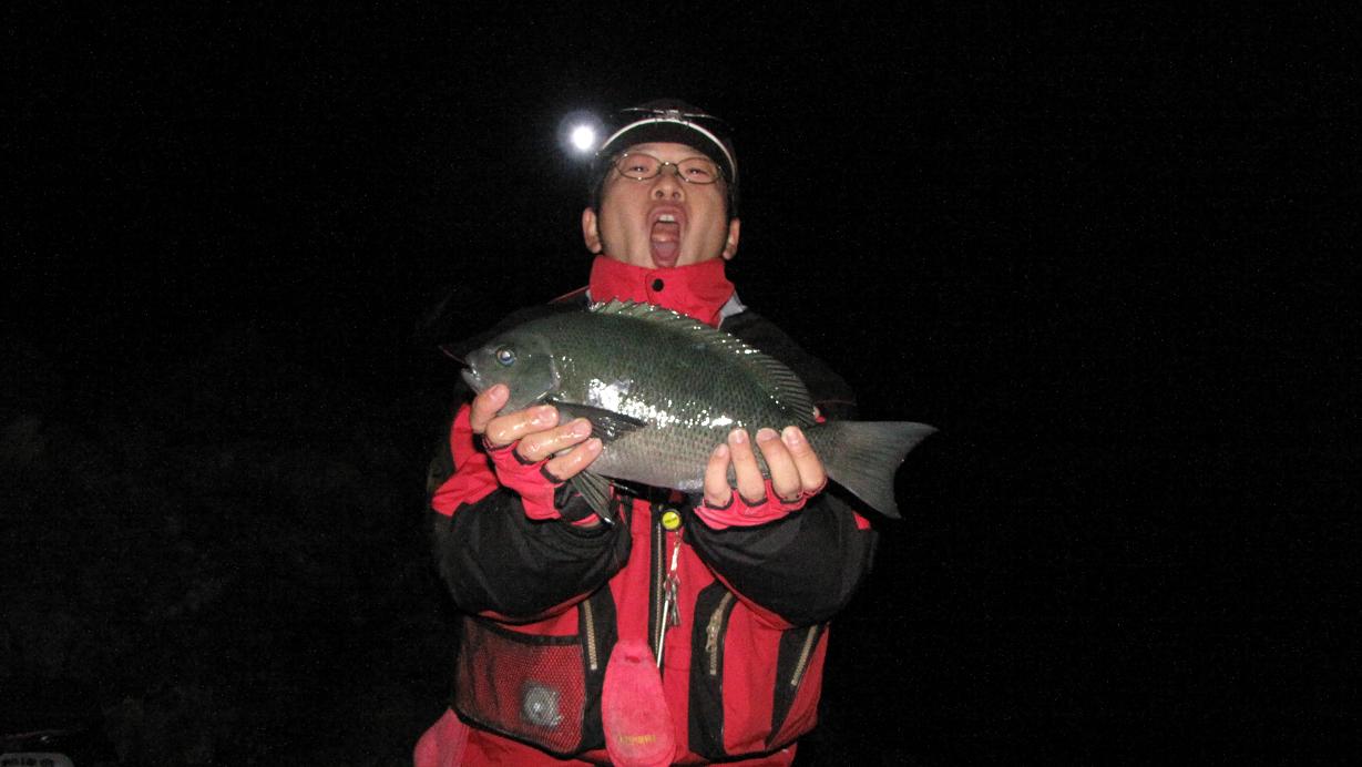 夜釣りでのグレは少佐