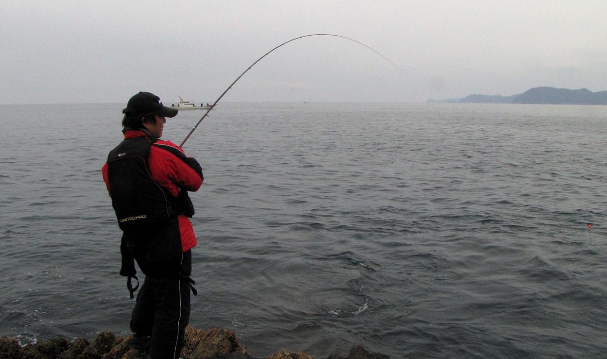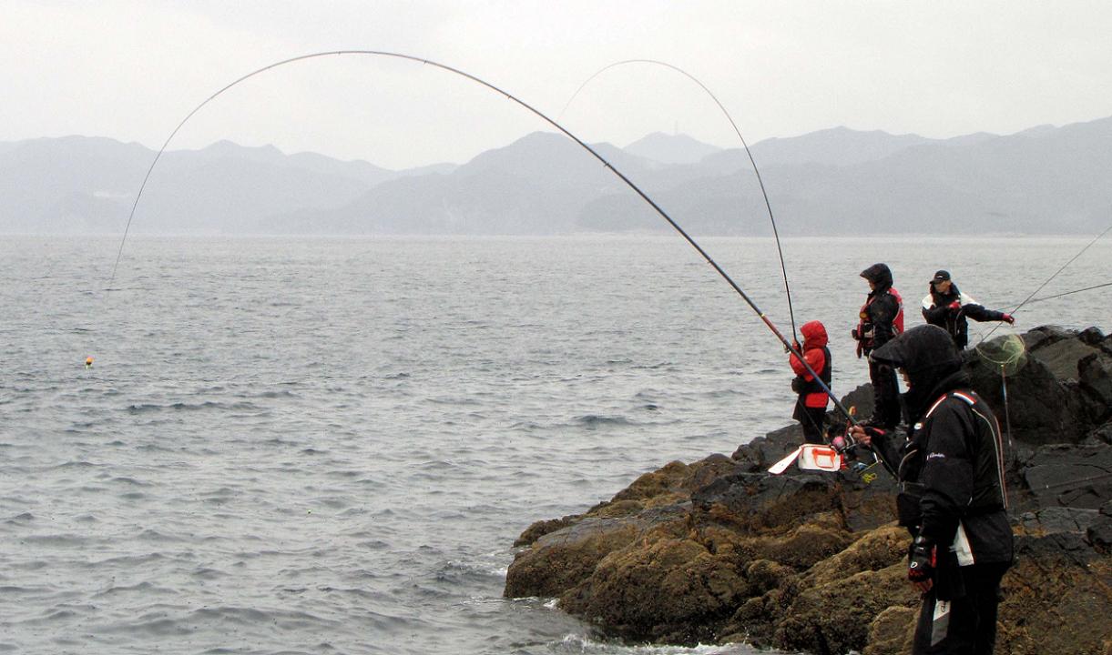 磯釣りデビューの竿曲げだけど、ベテランに近い竿の操作です