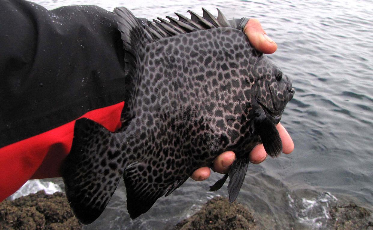 磯際で釣れたイシガキダイ、この石垣模様が気に入っています