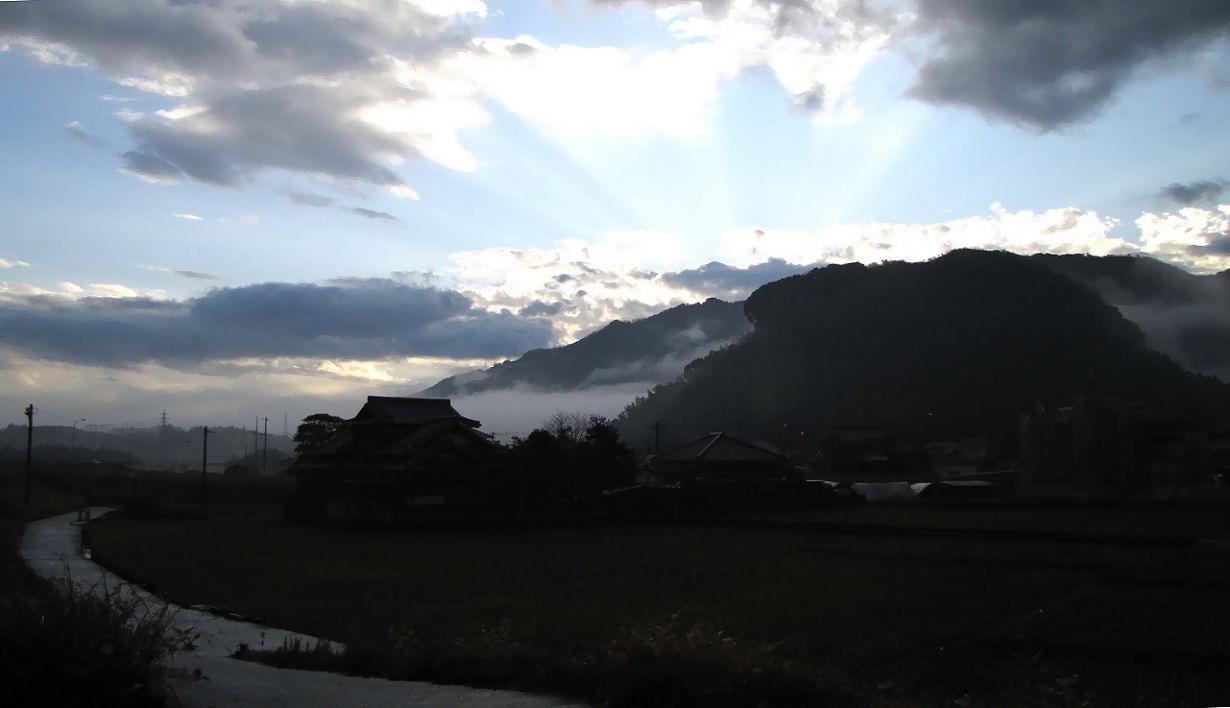 東の山並み、雨が残っていたのでかなり綺麗です