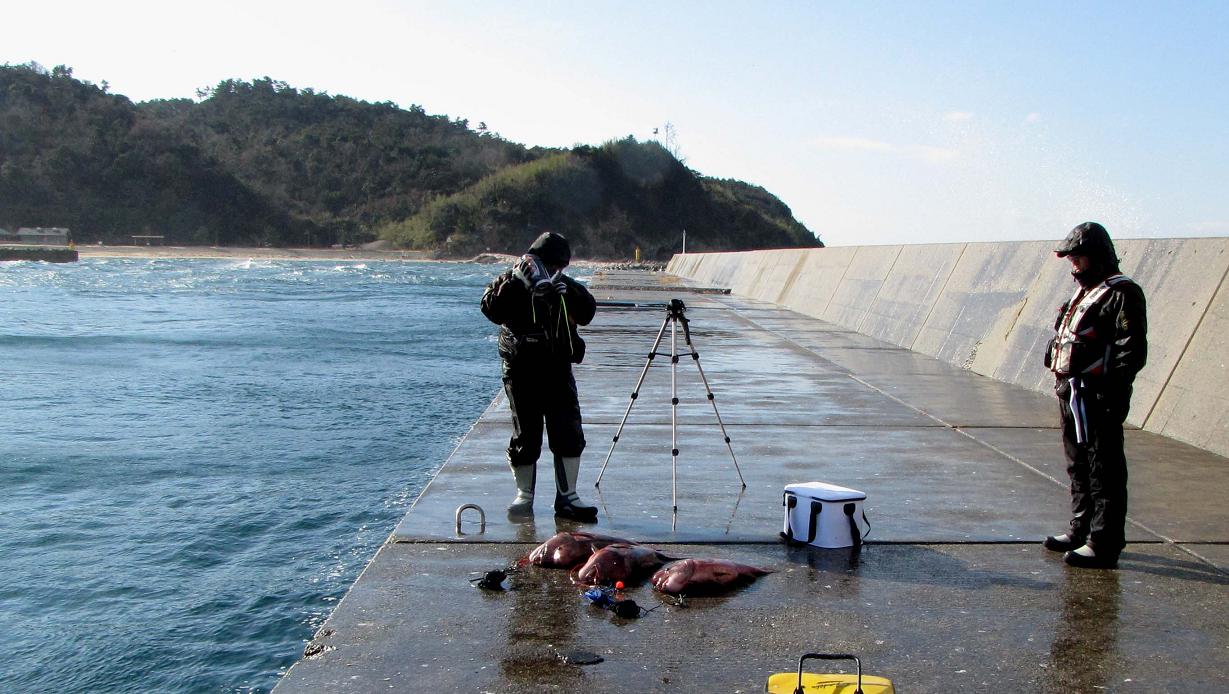 日本は寒波に包まれていたので本当に寒いのですが、3匹のカンダイが良い具合にファイトしてくれたお陰で体が温まり、波しぶきを被ってもなんとか撮影を続行出来たのです。正にカンダイさま様・・・ですよね。