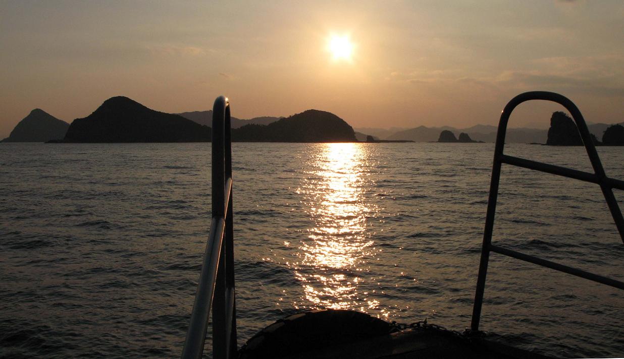 喜福丸は、中のハエ~カモンバエ~シバエ~大バエ~トウセンバエ?~トマス崎~高島の鼻を回って帰港、木村君の車で大分へ・・・。