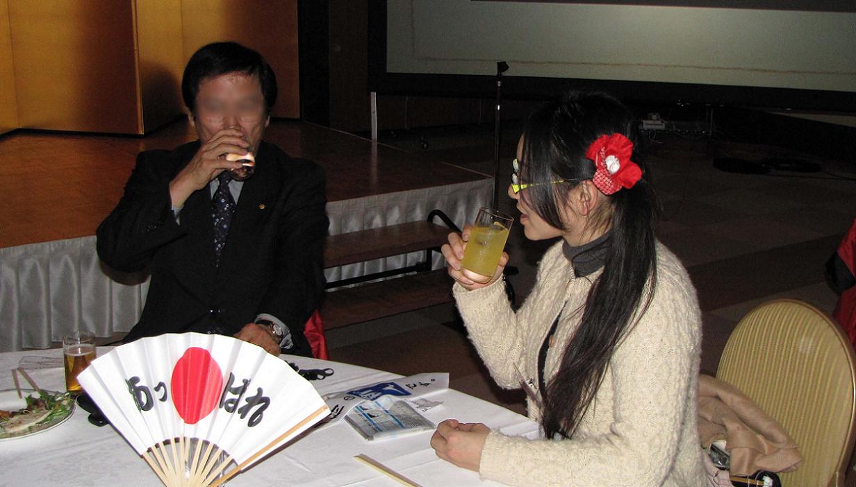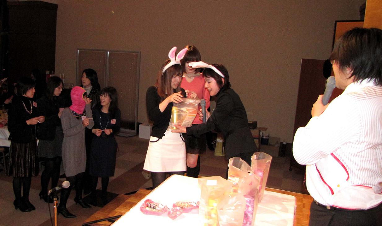すでに挨拶などは終わっているらしく、会場内は和やかな雰囲気であちらこちらから談笑の声。アトラクションも次々と出て、本当に楽しく過ごすことが出来ました。私のリクエスト、コタツとみかんも用意されて満足です。