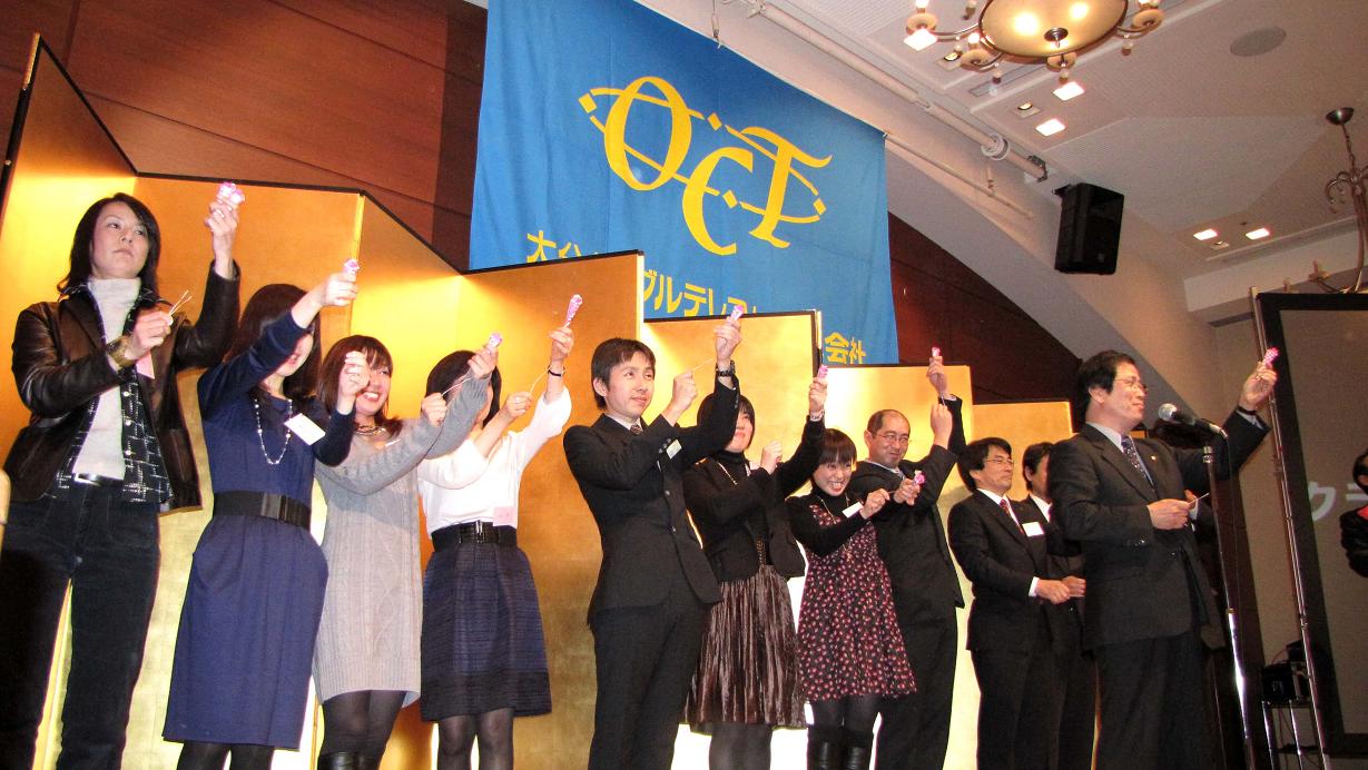 大分ケーブルテレコム(OCT)の新年会が過日開催され、途中から参加してきました。いつもなら忘年会で大集結するのですが、昨年の暮は新型インフルエンザが社内でも流行の兆しを見せたため、忘年会を中止して年明けの新年会が開催されたのです。