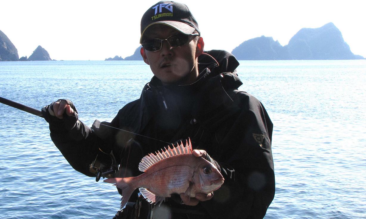 抽選で私と一緒に釣ったのは、麻生君と紙田君で、最初に上がったのは“田の尻”でした。ココは生態反応がなく、“白子島の北”へと瀬替わりしました。この場所でもグレは出ませんでしたが、15m以上まで探っていくと、30cmくらいのマダイが良く喰ってきたので楽しむ事が出来ました。