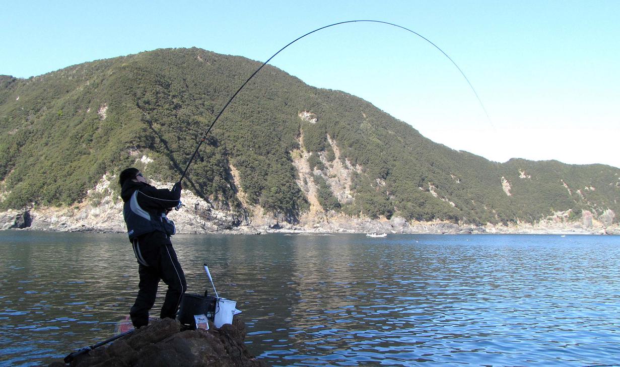 磯釣り1年の紙田君。カンダイを掛けましたがこの後ハリ外れ
