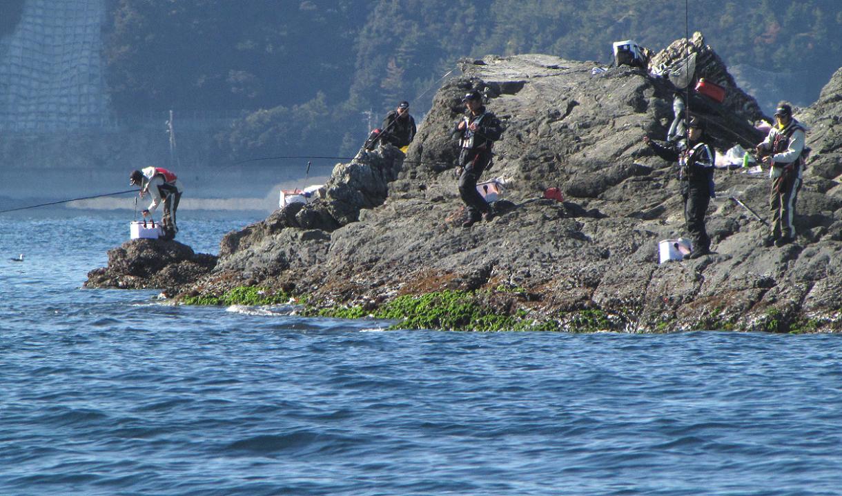 大会終了後、小浦の防波堤でカンダイを狙ってマキエを1時間30分撒いたのですが、大型のカンダイは現れません。当然仕掛は組まないで、あえなく終了。グレに見放され、カンダイにも見放された一日になってしまいましたが、新しい出会いなど色々と素晴らしい一日でした。
