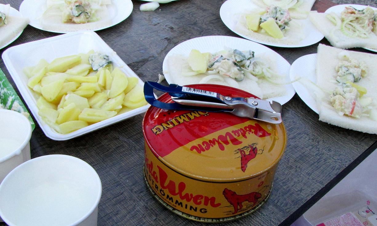 魚を一匹も釣りきらなかった人達の食事が用意されています