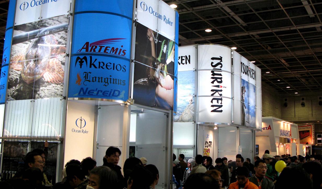 釣研のブースは、ほぼ中央の好位置にありました