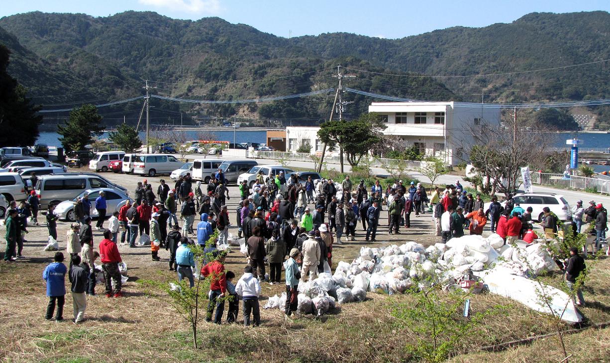 参加者は200名を越えていました。観音崎の赤崎港周辺から四浦半島先端部の、間元・高浜港周辺までには約20箇所の漁港と浜などがあり、マイカーを使って5~10人くらいに分かれ、強風下で清掃活動を行ないました。