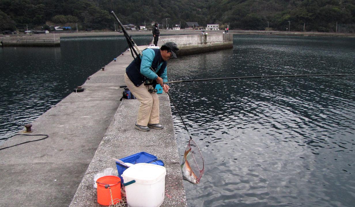 外向きの水深は約8m?マキエを打っている場所でカンダイは確認出来ませんでしたが、マダイを釣った人が言うには、波止際で白くて大きなカンダイを見たとのことでした。