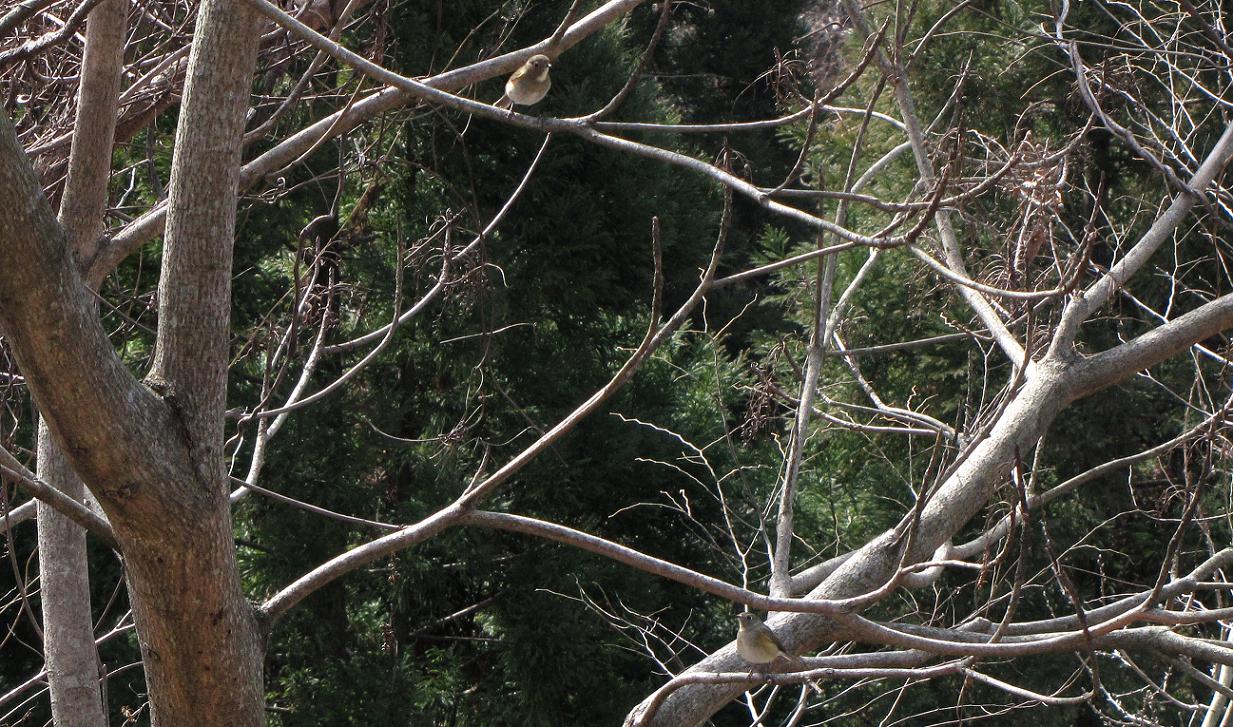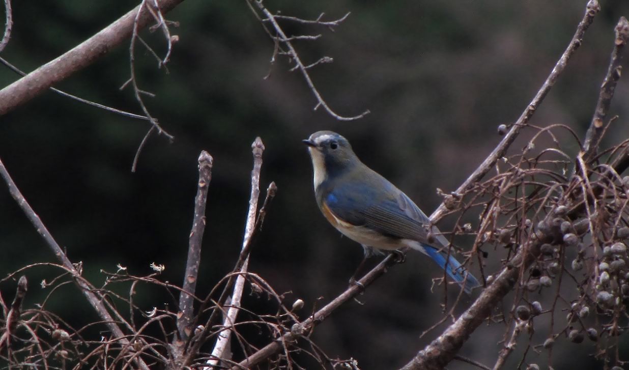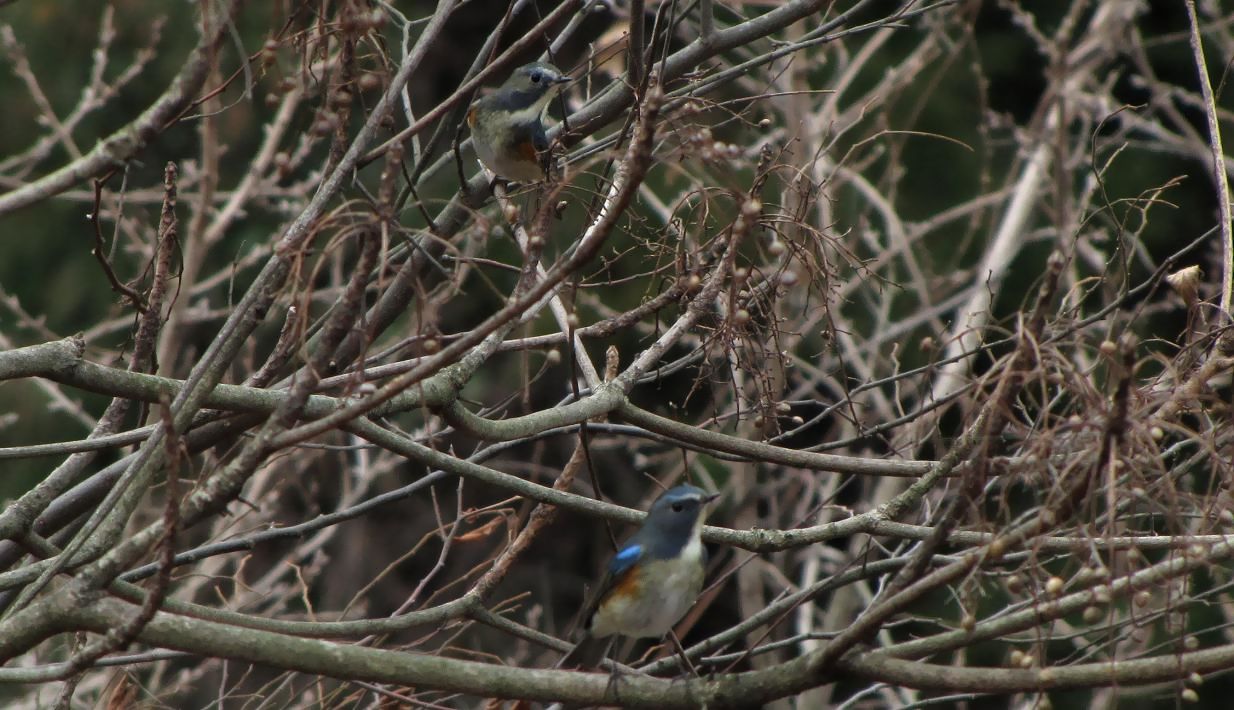 県民の森で2月頃、一本のハゼの木に5羽のルリビタキが来ていました。縄張りを持っているのはメスで、自分の餌場を守るために、やってくる他のルリビタキを追い回していました。でもココで一番綺麗なオスには反撃を食らうので、深追いはしていませんでした。