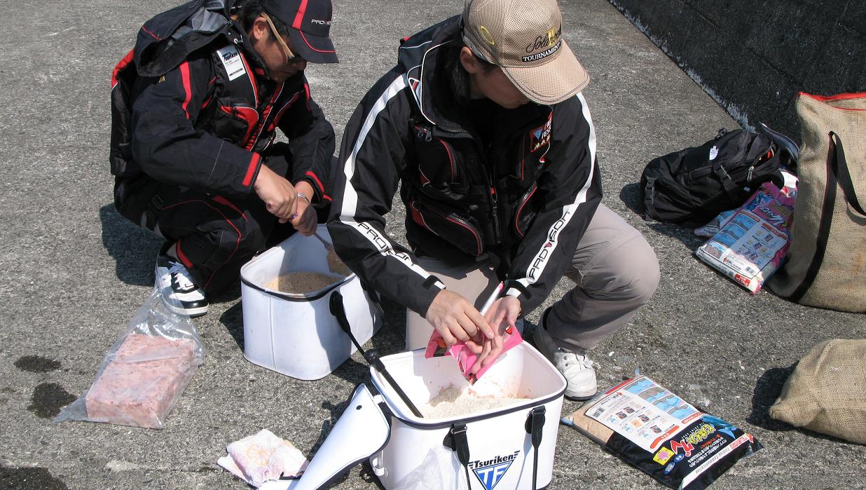 9時34分、最初のマキエを作っています