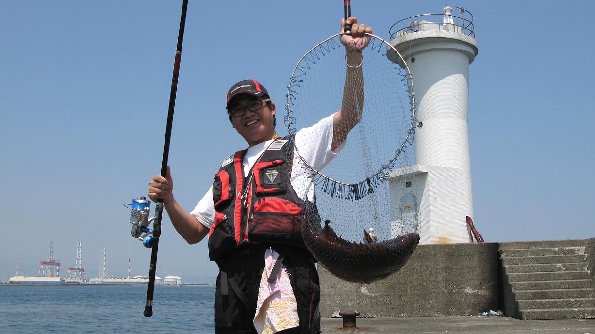 翌朝、釣具スーパーイヴで、パワースペシャルフカセ5号とマキエのオキアミやピンポイントグレ・予約していたサシエの特大アオイソメを購入して、大勝丸に乗って横一文字の灯台へ降り立ちました。