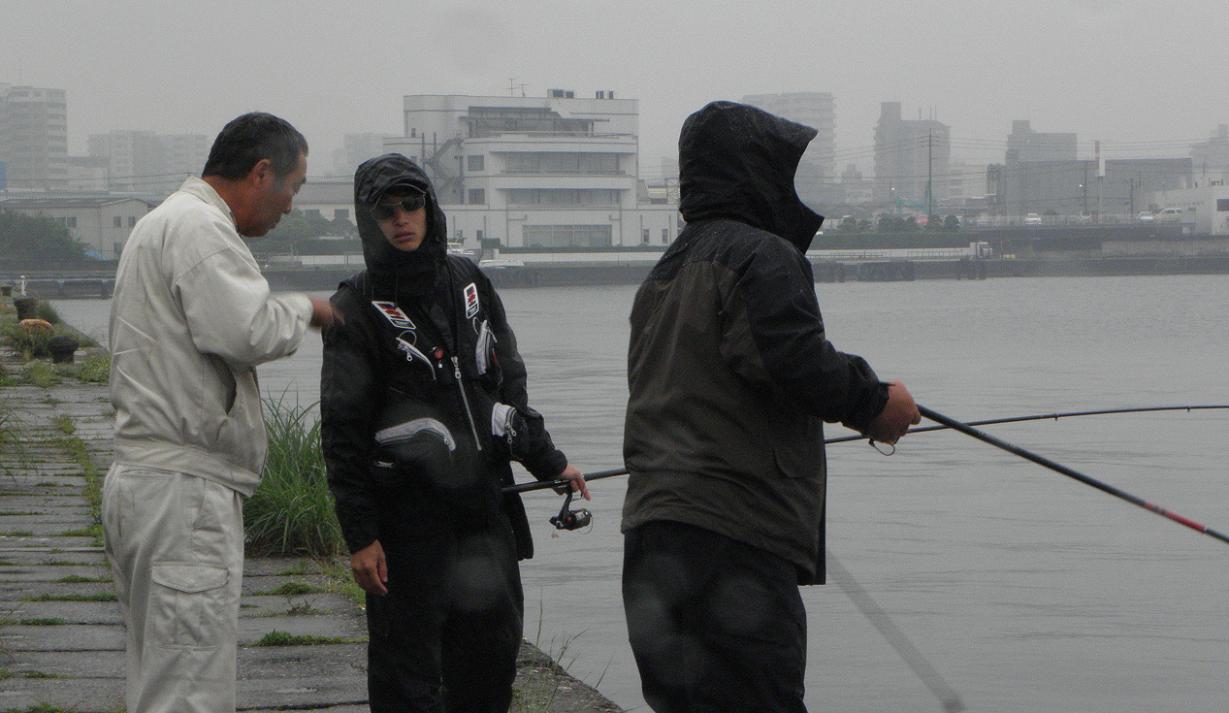 おバカな釣り人と、それを見ているおバカな見学者、私を含め4人のおバカさん。