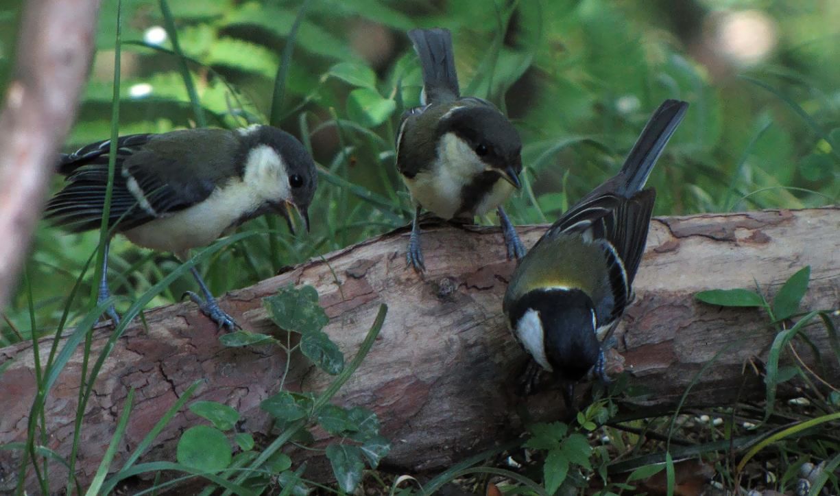 餌場のシジュウカラ夫妻の雛が巣立ち、若となっていました。