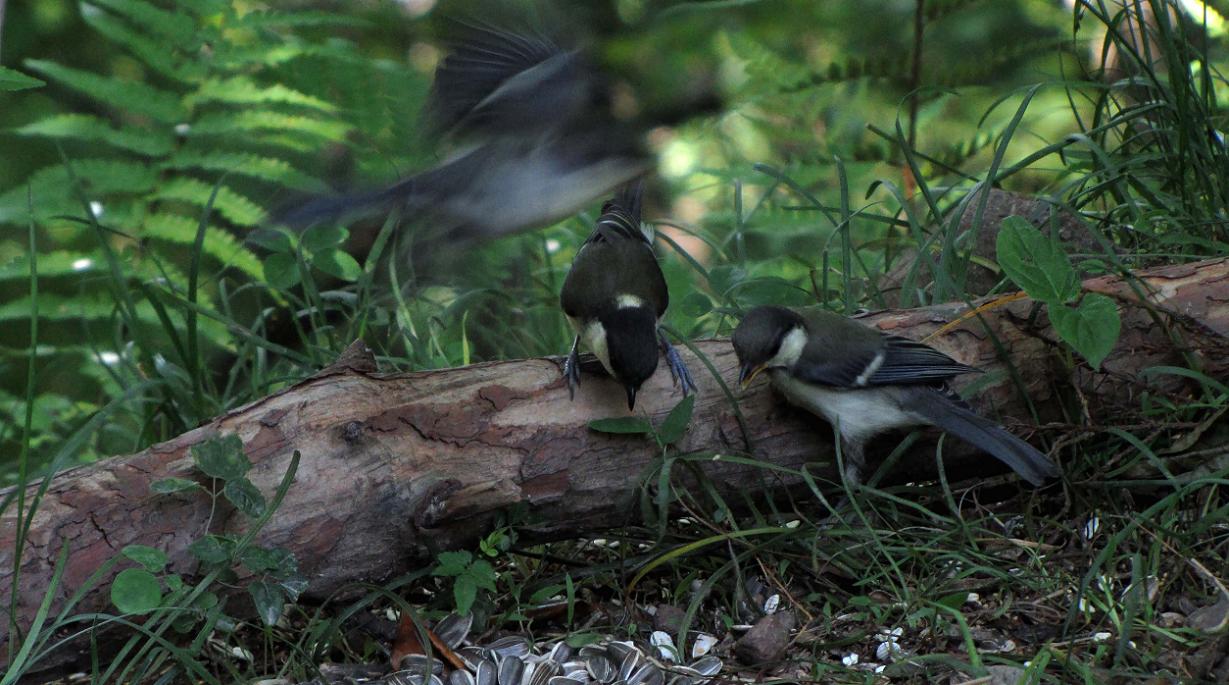 4日はお父さん・お母さん・若が1羽、それぞれ単独でやって来ました。若はヒマワリの種を持ち去りましたが、割って食べる事が出来たのでしょうか?