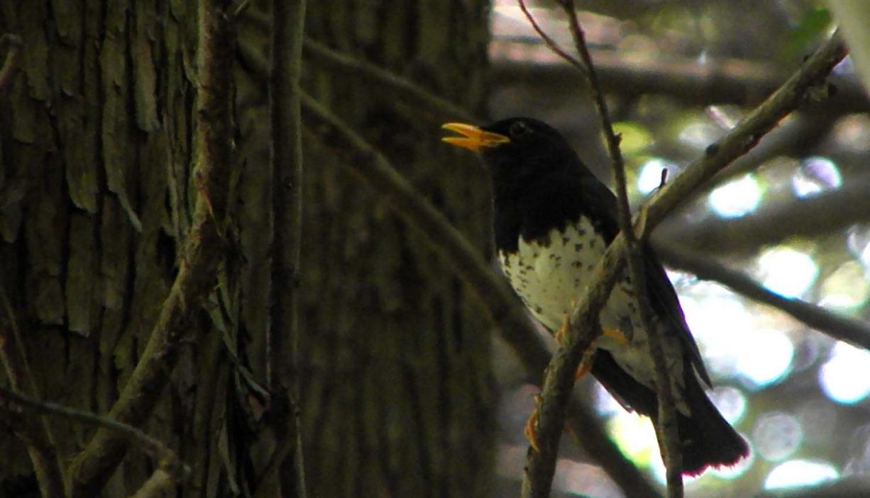 いつもの餌場でゆっくりしているとクロツグミが囀りはじめました。ここ2~3年は、この付近では鳴いた事がなかったのですが、相当に珍しい事です。