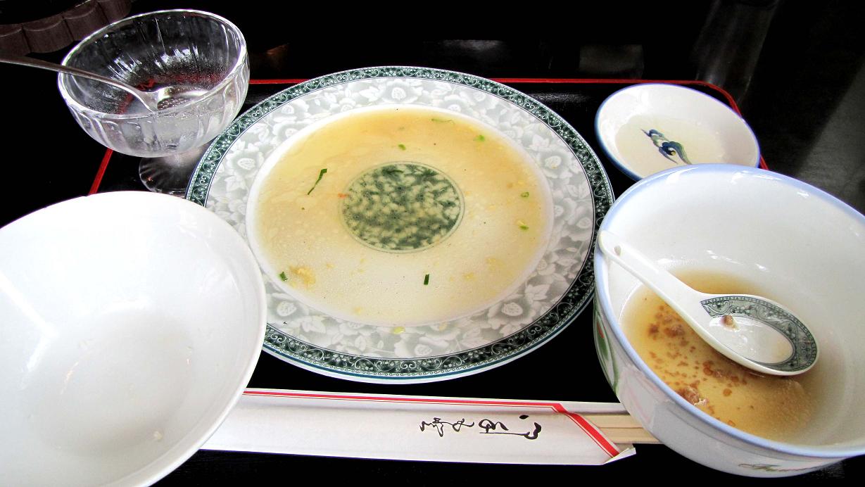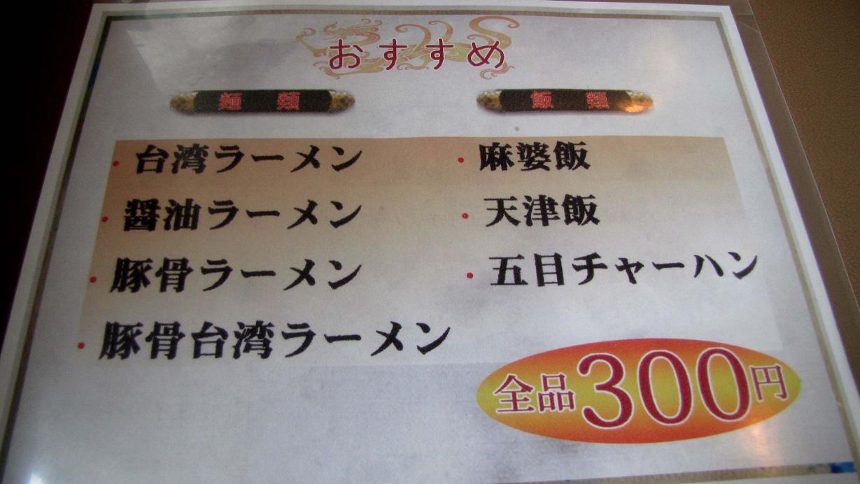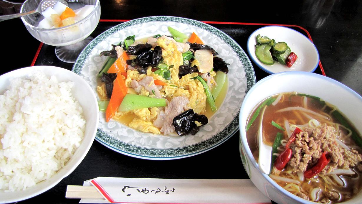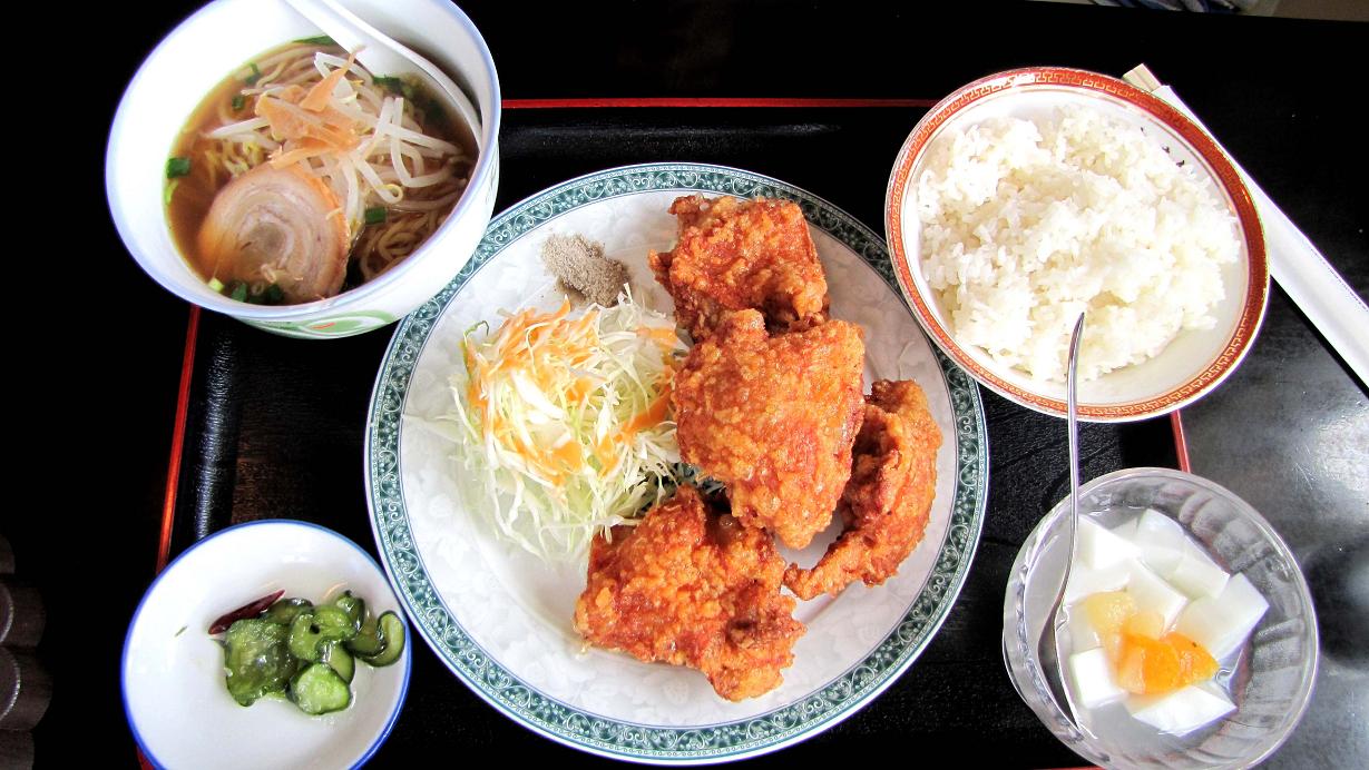 お昼のメニューで私が頼んだのは、“豚と卵の野菜炒め定食”。ご飯は大盛りのタイ米?台湾ラーメンのハーフサイズ・杏仁豆腐などが付いています。これで780円、ごっちゃんは“から揚げ定食”で同じ値段、その大きな唐揚げを2つ私が頂きました。どちらも旨かった~~♪