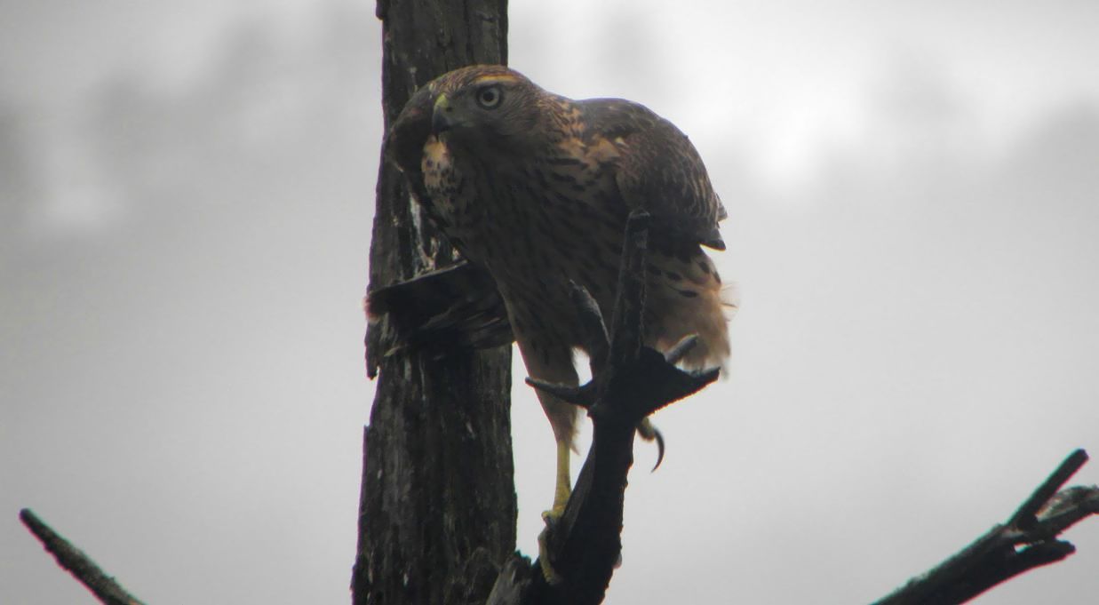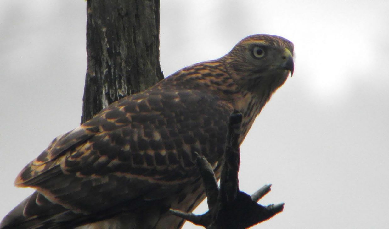 松の枯れ木、今日のお客は予想だにしなかった大物、オオタカの若です。