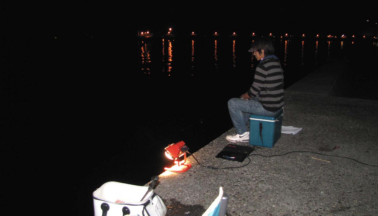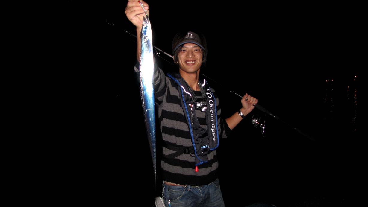 投光器を使うと、回遊しているタチウオを足止め出来ます