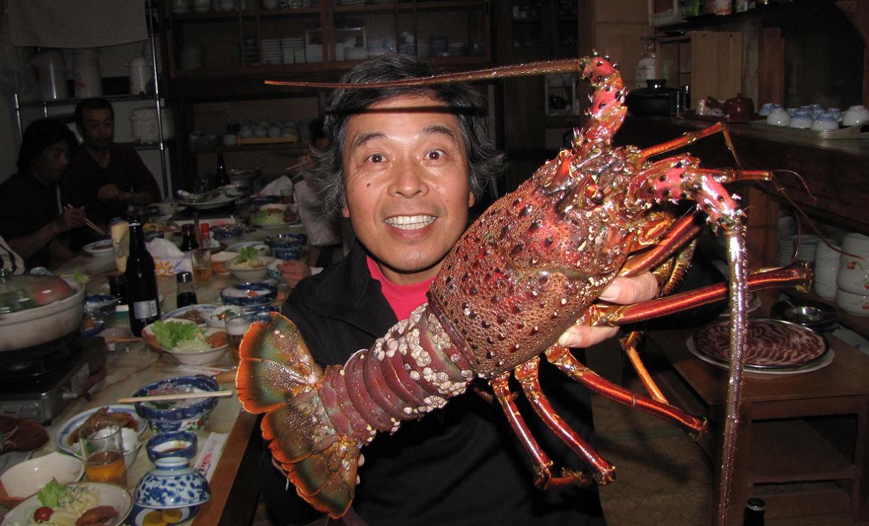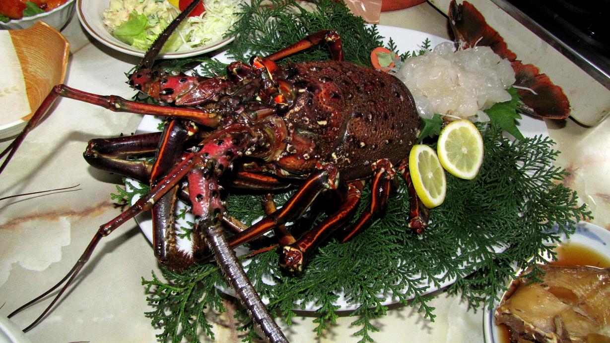 メインは猪鍋ですが、今回も伊勢海老が2匹出ました。その大きさは半端なく大きく、推定2.5kg~3kgの特大サイズ。以前出たのは同じ位の五色エビでしたが、今回は正真正銘の伊勢海老でした。