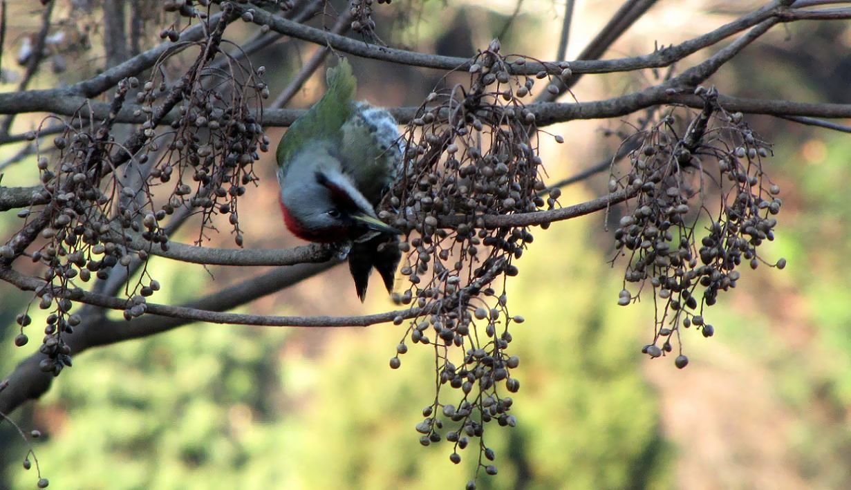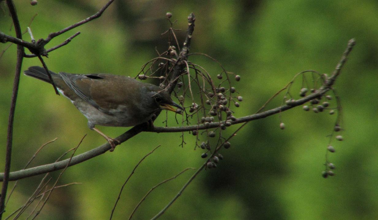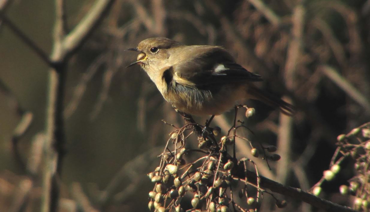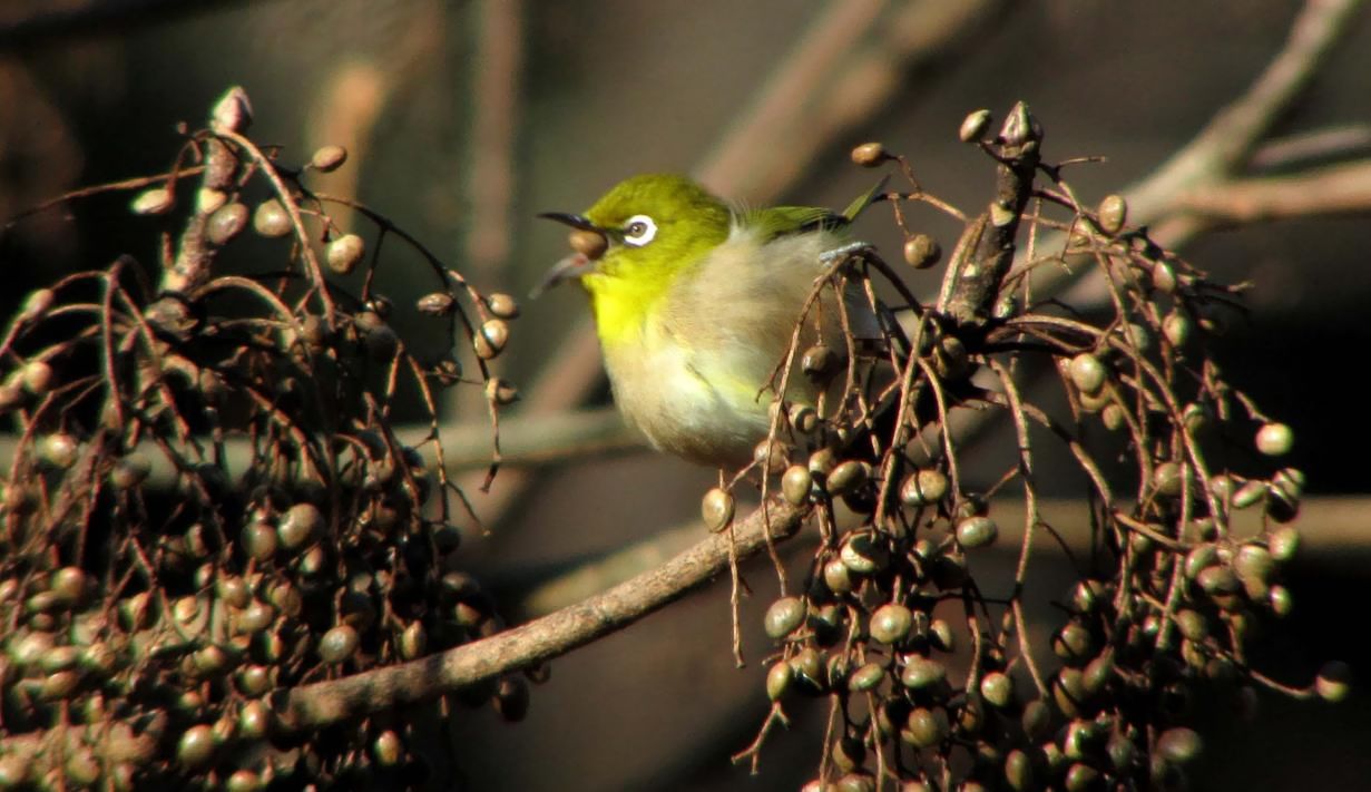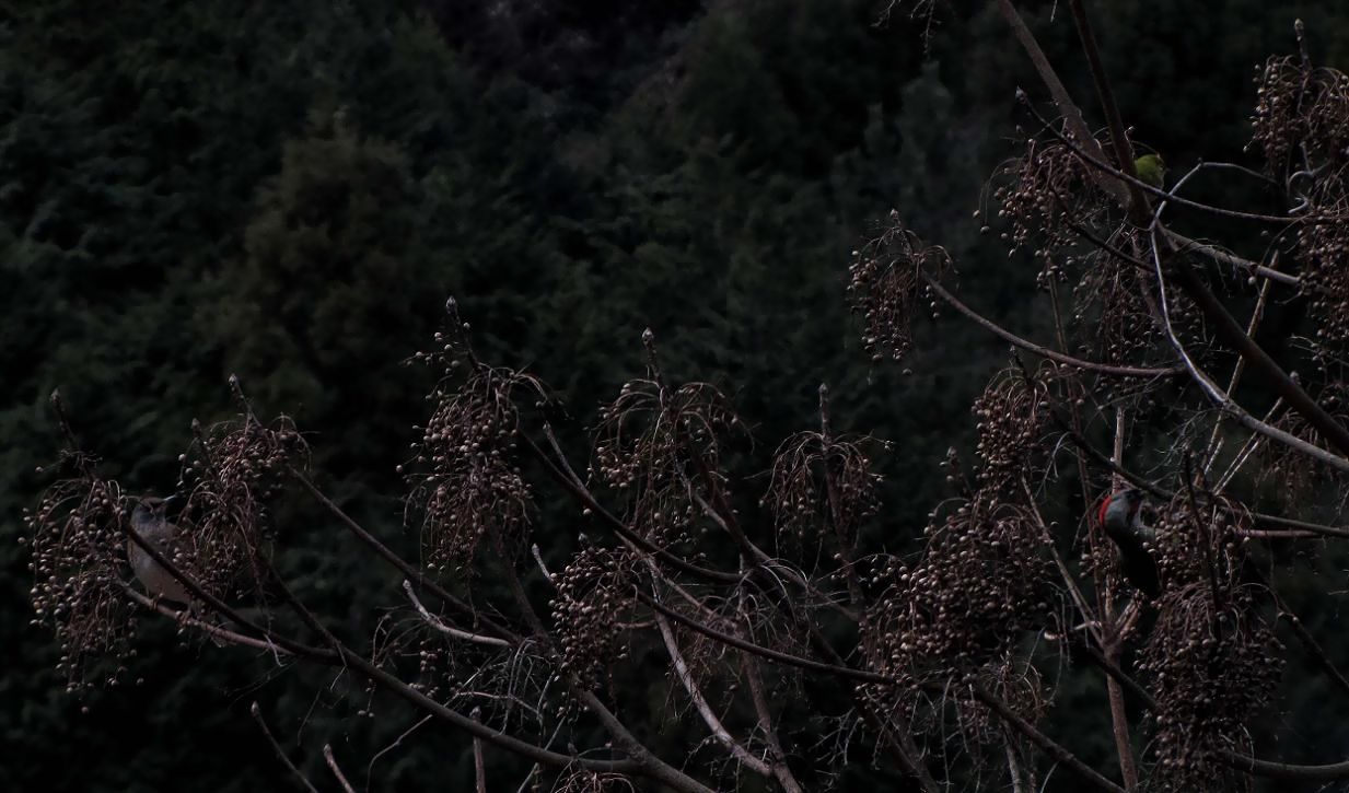 16日のハゼの木、ヒヨドリとメジロ。実は少しだけ残っていました